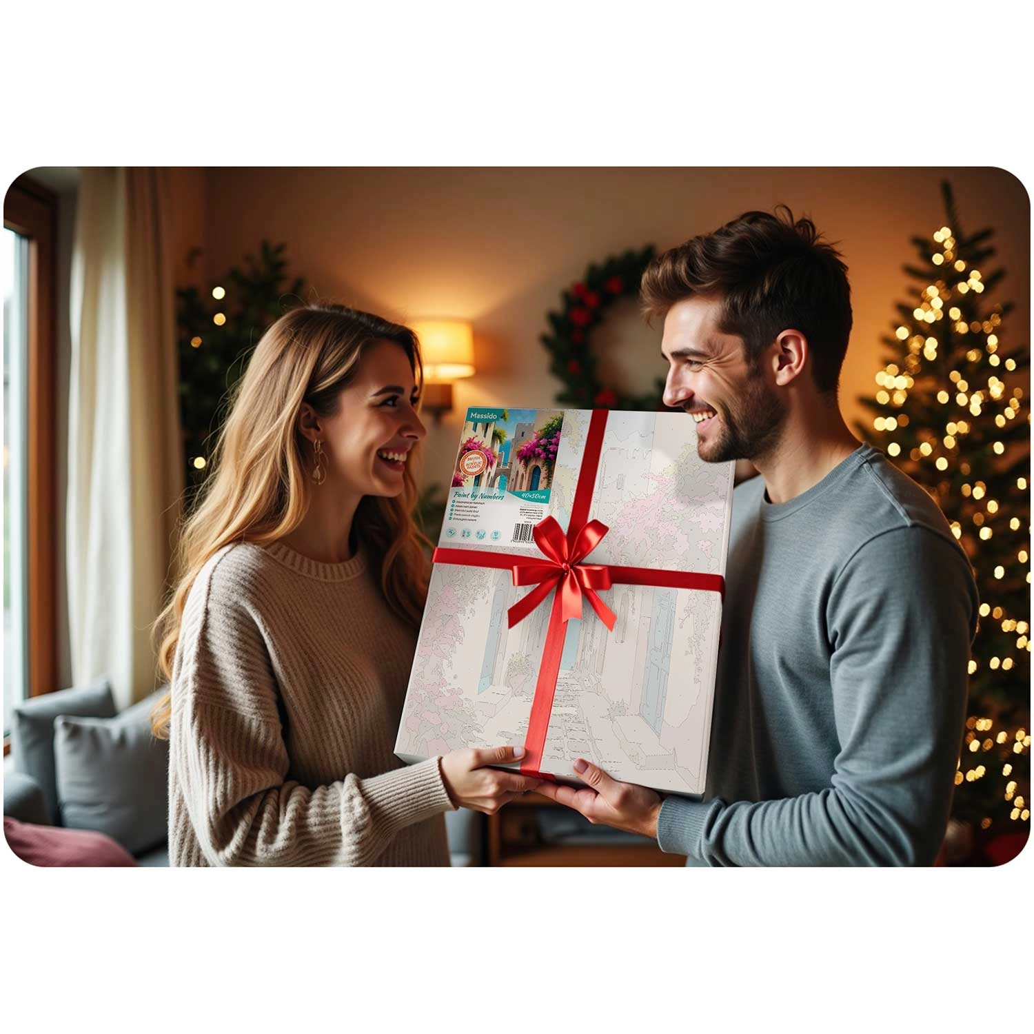 The package includes three quality brushes of different sizes for detailed work and quick coverage, as well as hooks for hanging so you can proudly display your finished painting. Paint by numbers is a great relaxing activity for individuals and families and a wonderful idea for an original gift.