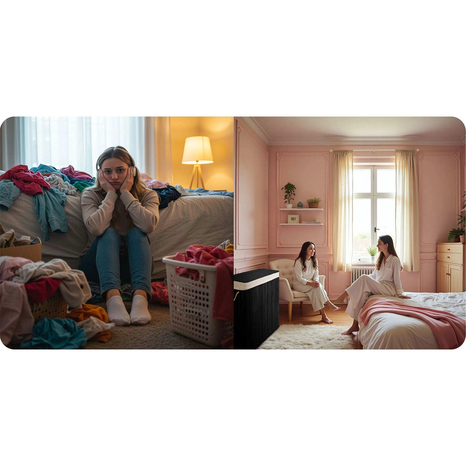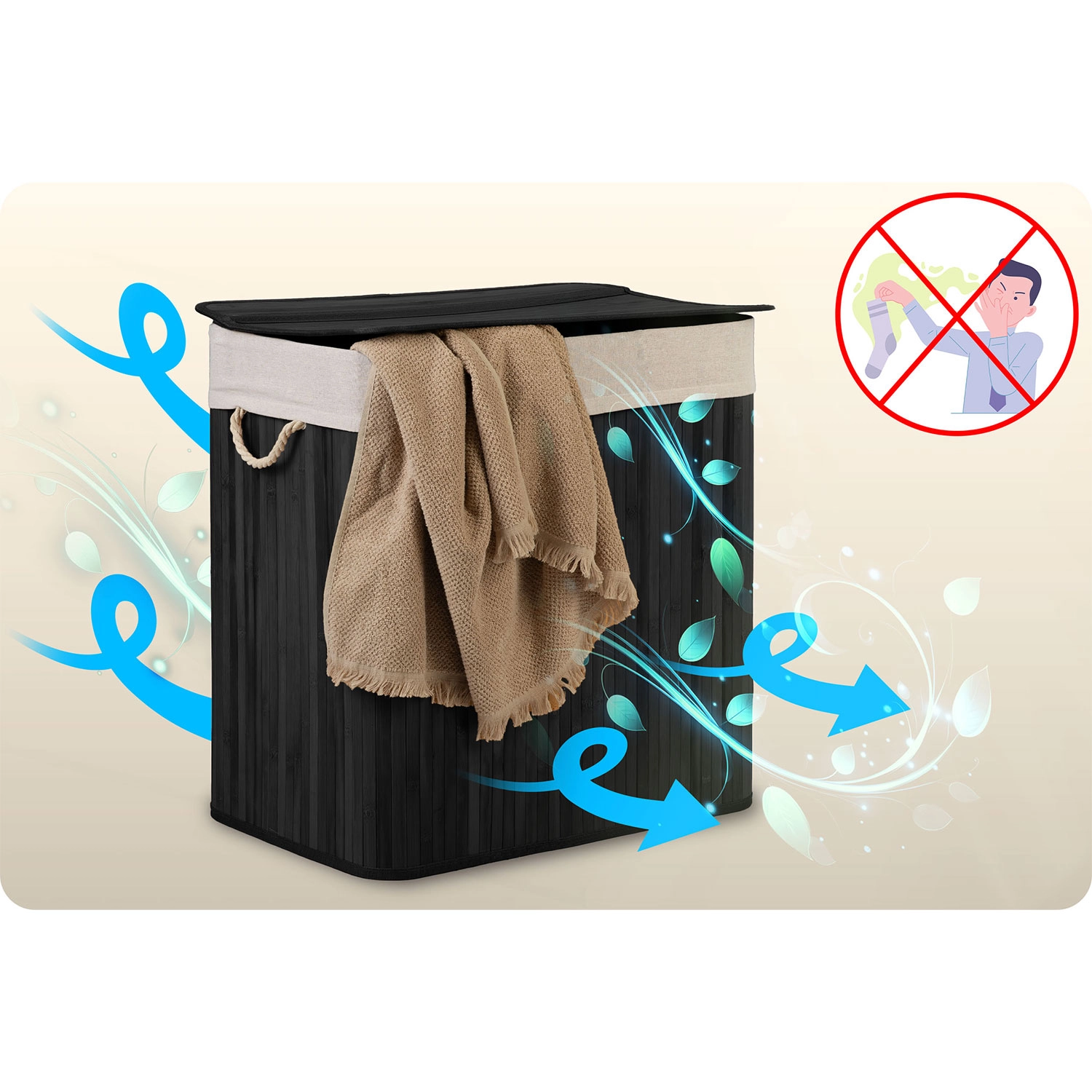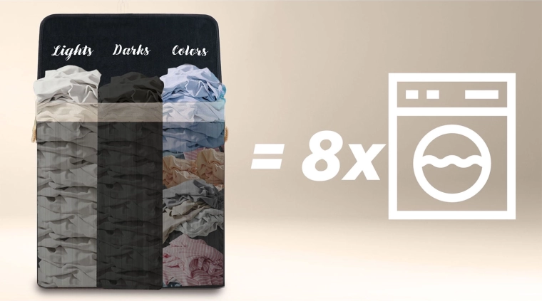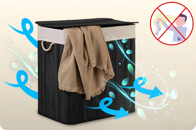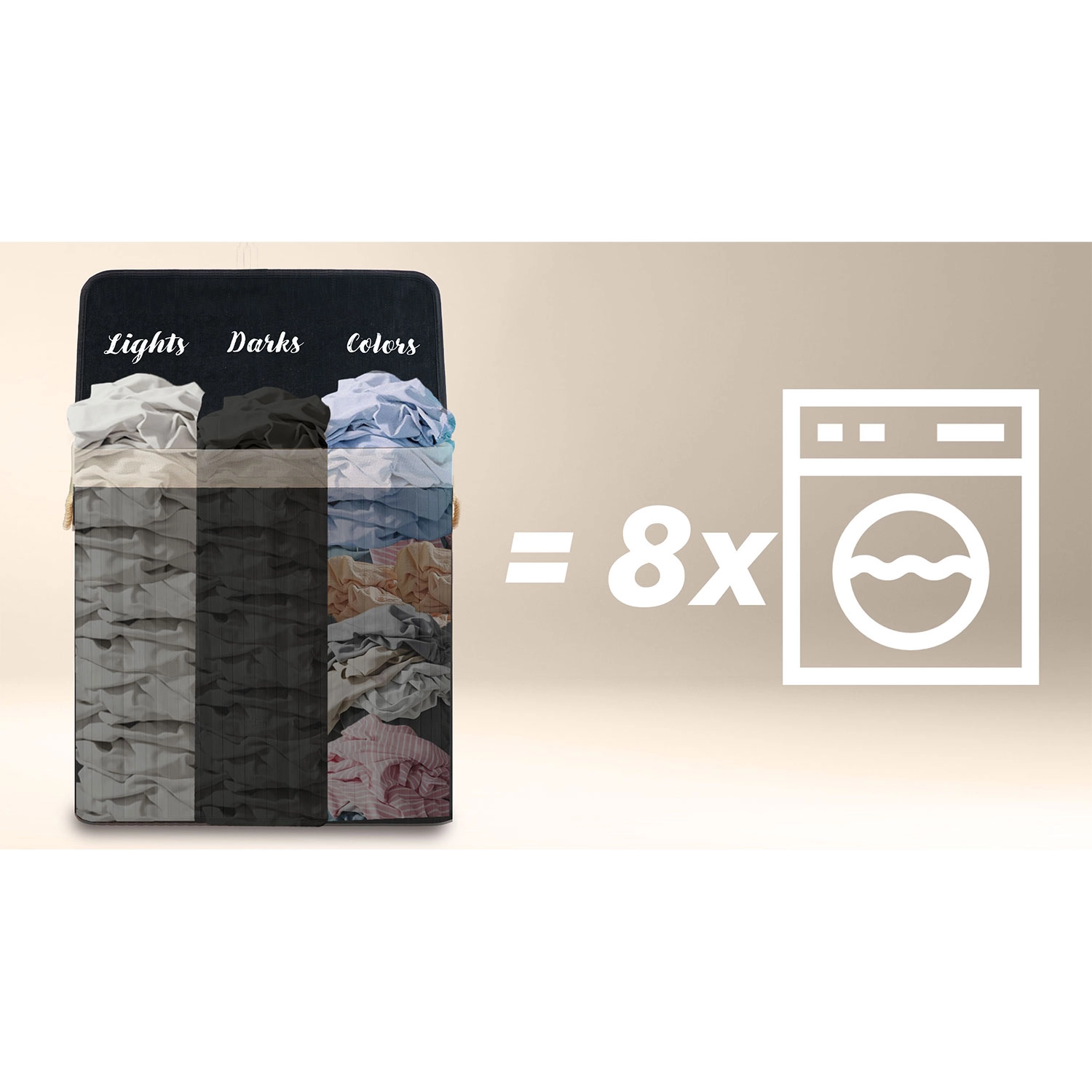 Discover a practical solution for everyday laundry sorting. The generous 150-liter capacity holds laundry from multiple loads, while the clear Lights / Darks / Colors labels save time on pre-wash sorting. Natural materials—bamboo and cotton—support airflow and help reduce odors.