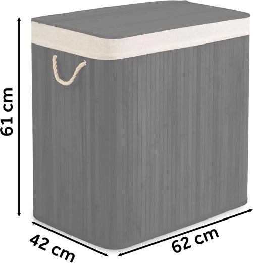 Durable bamboo construction with a lid and rope handles fits perfectly in the bathroom, bedroom, or closet.