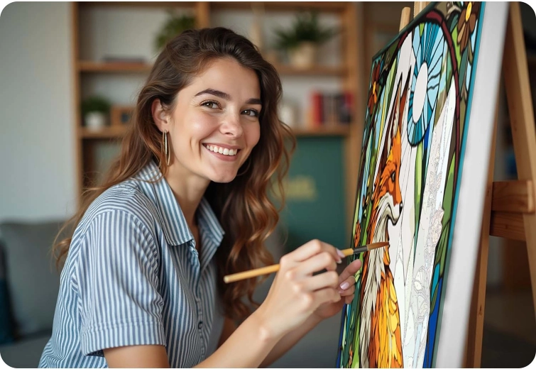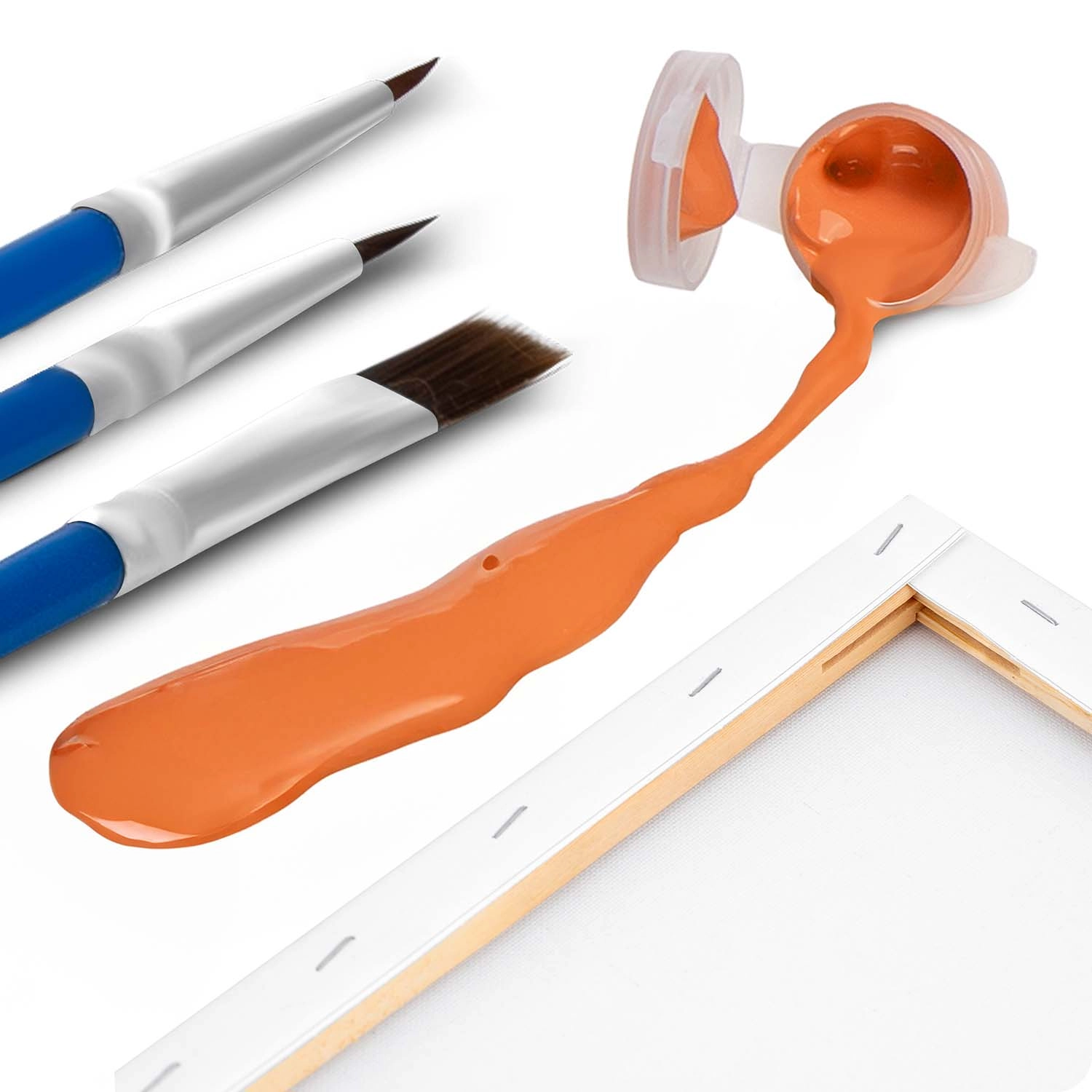 This complete set by MASSIDO is ideal for adults and kids who want to relax and bring home a hand-painted artwork. The lightly printed canvas on a wooden frame safely guides you through numbers and colors step by step to a vibrant fox full of detail.