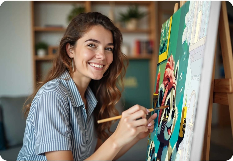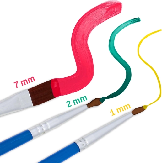 Thanks to the stretched canvas on a wooden frame, you can start right after unboxing. Three precise brushes (1 mm, 2 mm, 7 mm) make it easy to paint both backgrounds and the finest details. The quality acrylic paints spread smoothly, no thinning required, and once dry create a uniform surface without visible lines.
