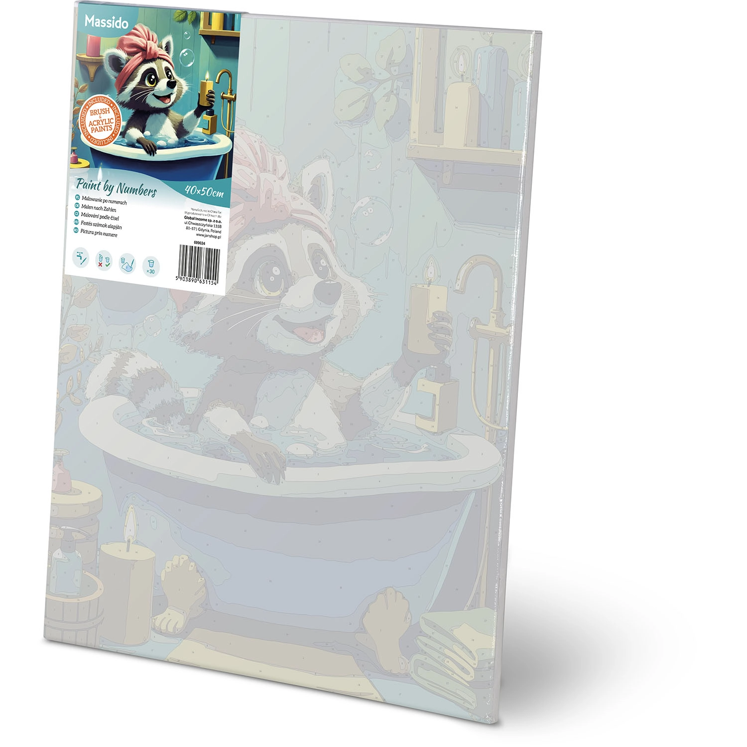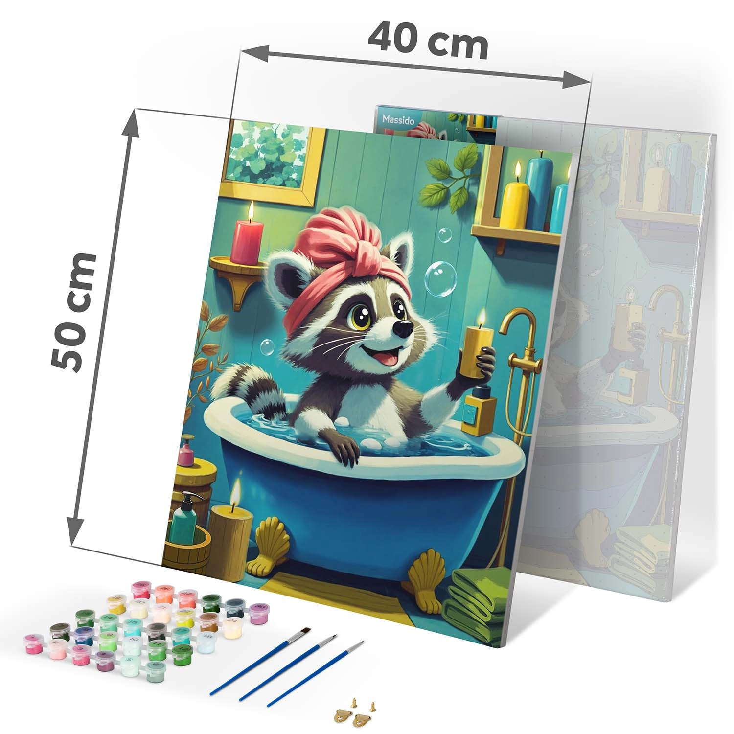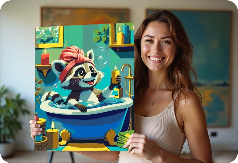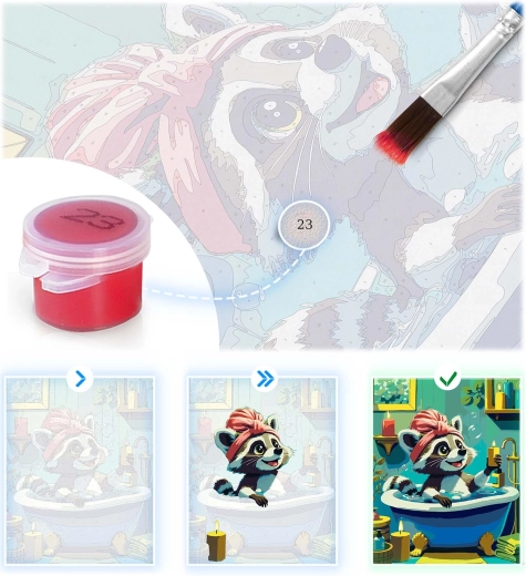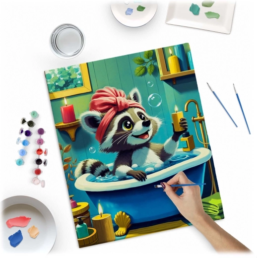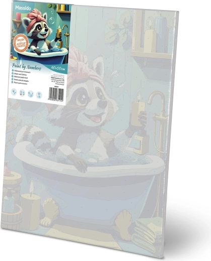 Paint by Numbers 40 × 50 cm – Cute Raccoon in a Bathtub MASSIDO