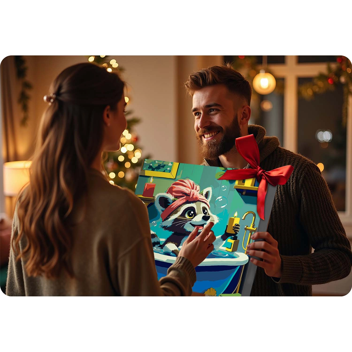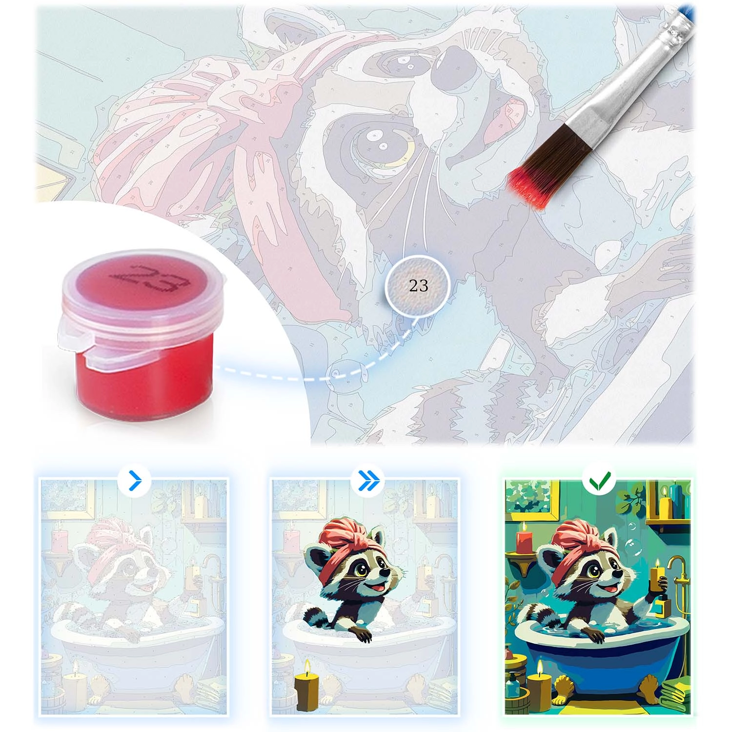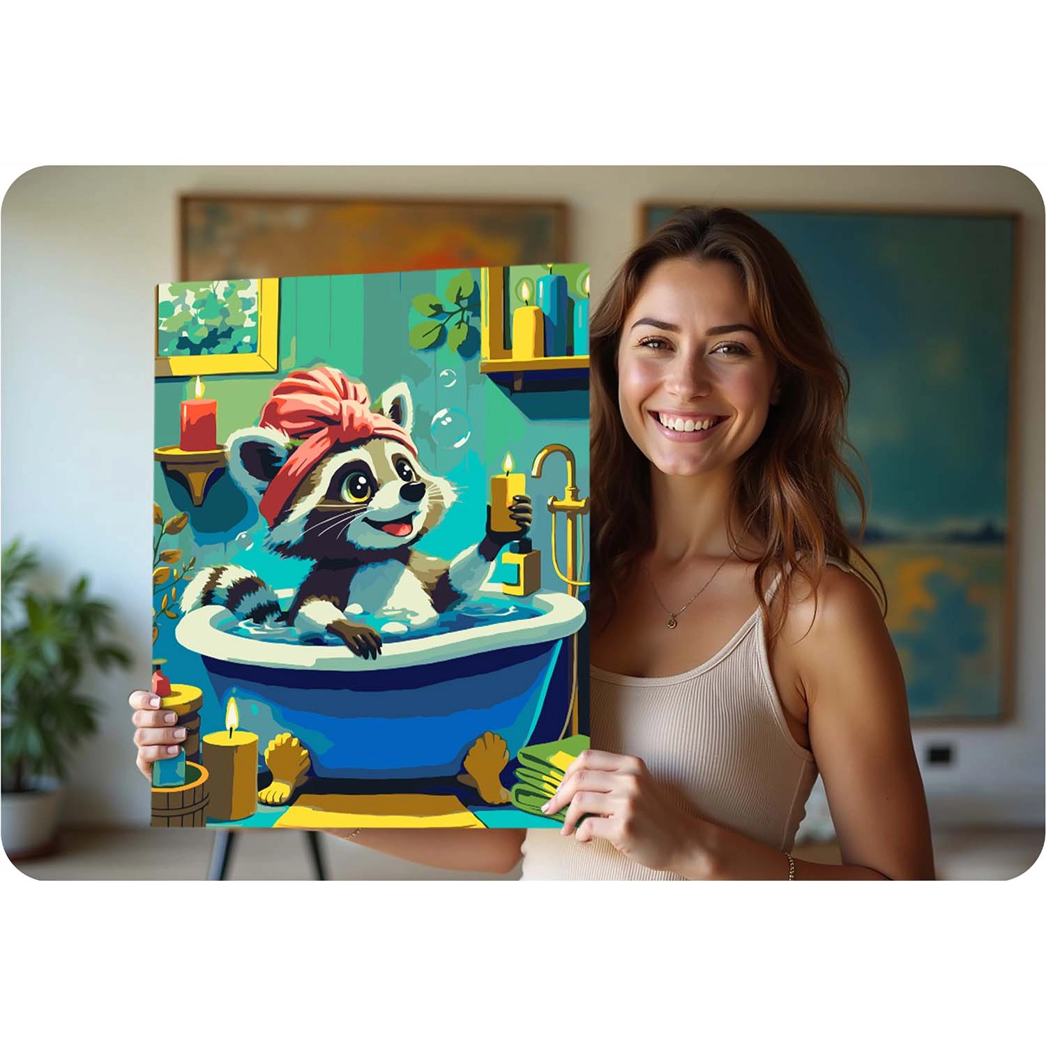 Paint by Numbers 40 × 50 cm – Cute Raccoon in a Bathtub MASSIDO