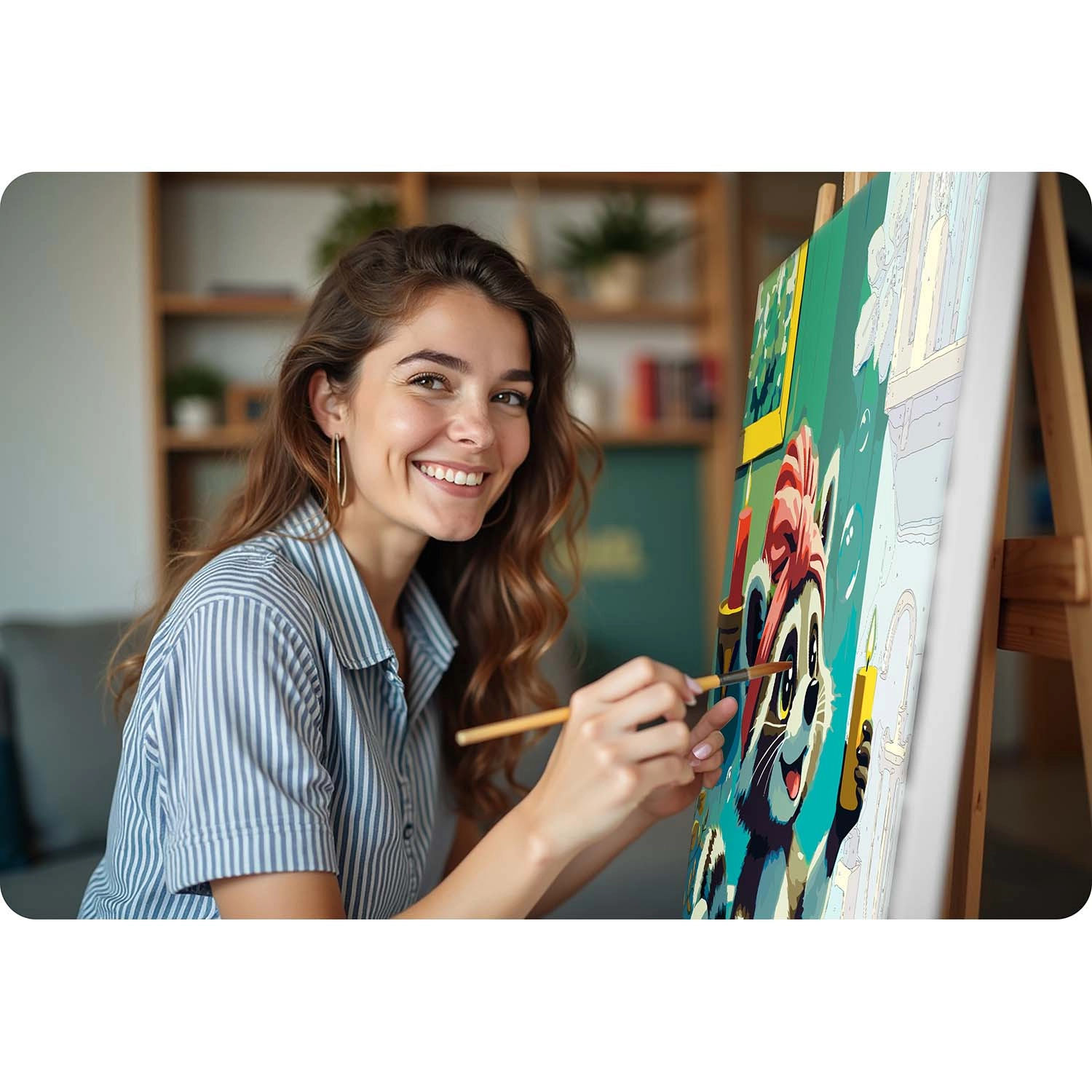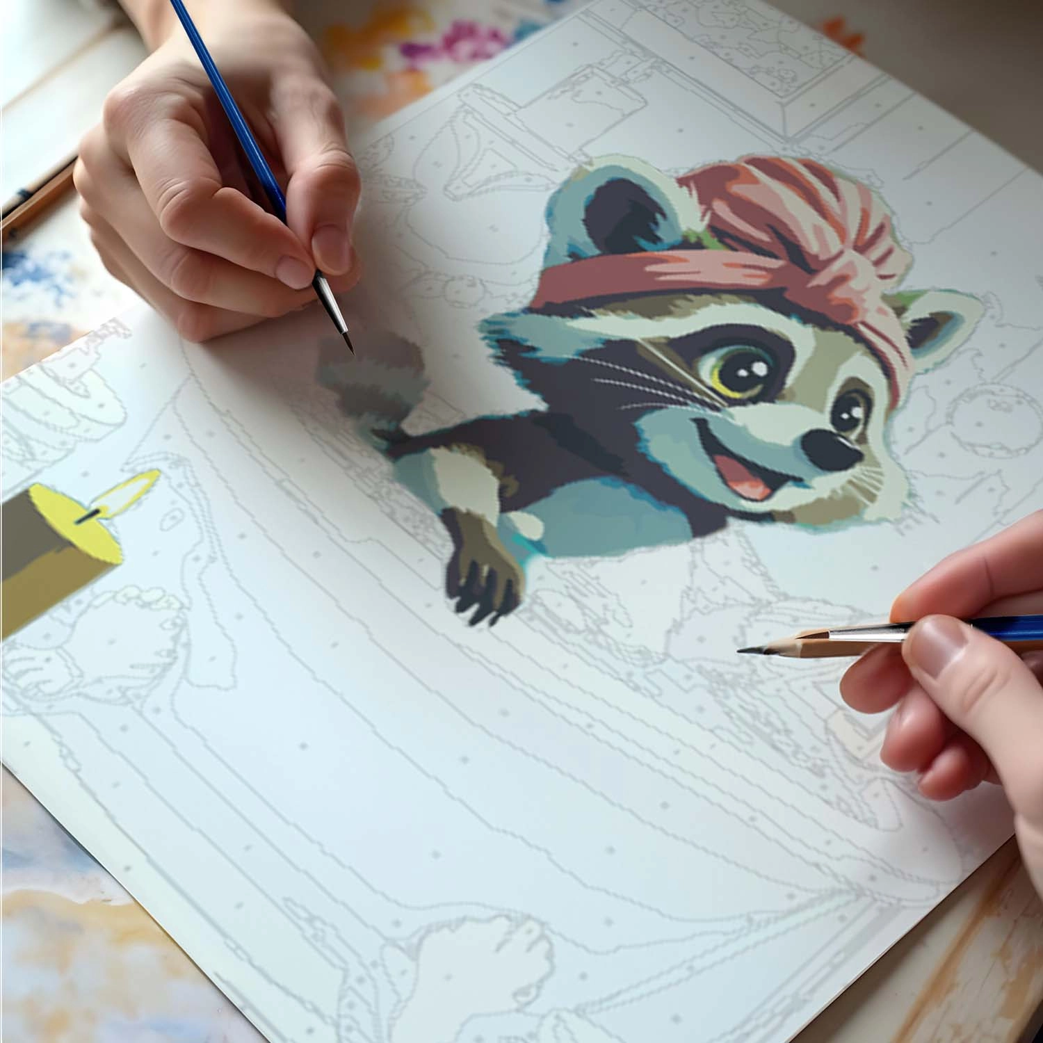 This paint-by-numbers set with a cute raccoon theme delivers a relaxing creative experience and a result you’ll be proud to hang on the wall. The pre-printed canvas with color underpainting and clear numbering guides you step by step to a beautiful painting with vivid colors and full coverage. You don’t have to be an artist — just match the paint number to the area and paint.