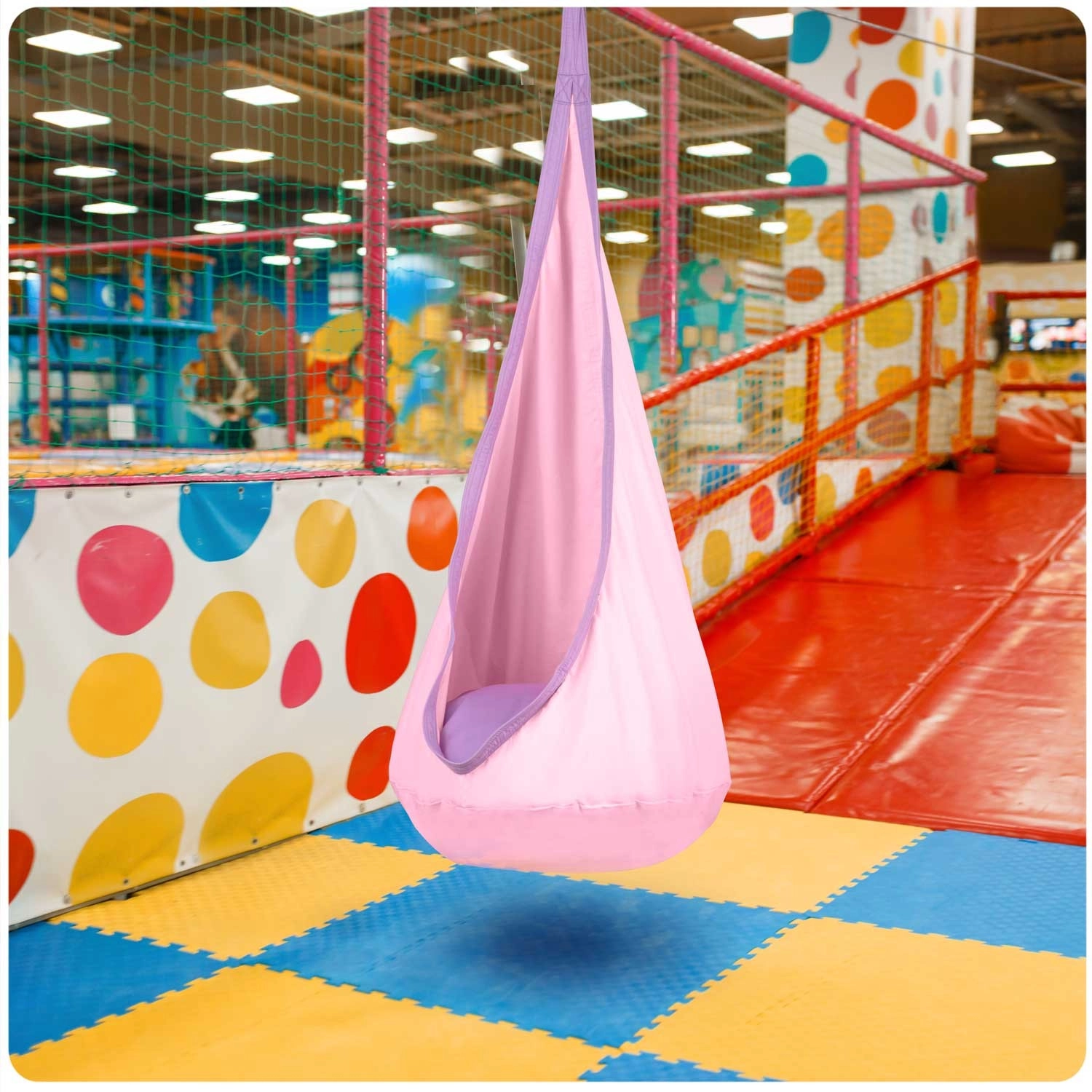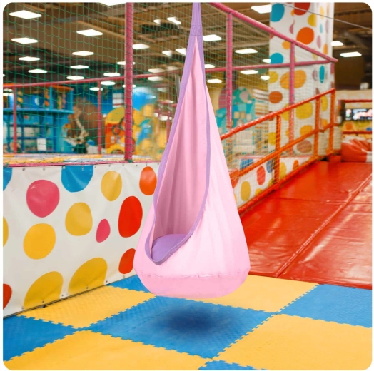 The Neo-Sport hanging cocoon seat creates a cozy nook for children to read, play, and gently swing. Thanks to its teardrop shape with a soft cushion, it offers a pleasant, enveloping seat that promotes relaxation and focus. The durable fabric with multiple stitching and the strong hanging attachment ensure long-lasting use both indoors and outdoors.