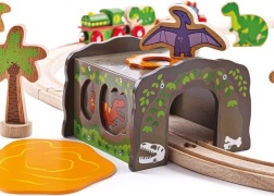Bring your railway world to life with a prehistoric adventure. The T. rex dinosaur tunnel with striking dinosaur illustrations draws children into imaginative play – ride through the ‘dangerous’ cave, avoid the guarding creatures, and create your own stories.