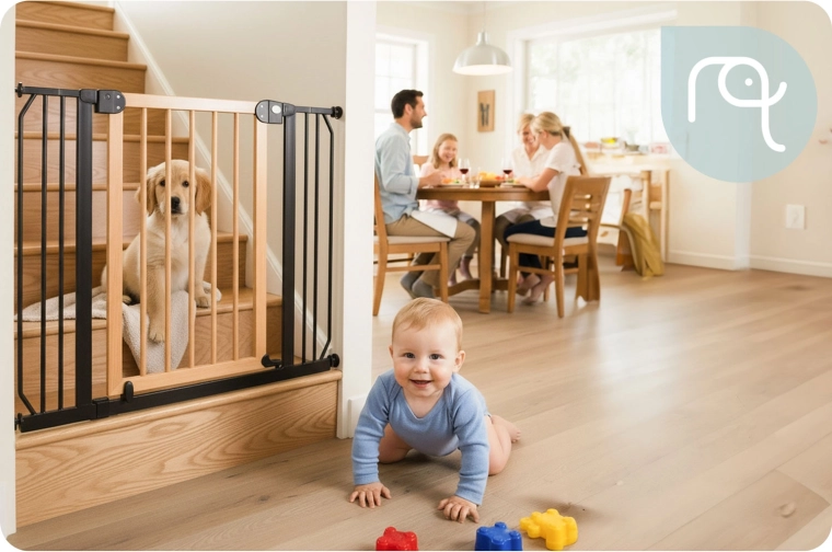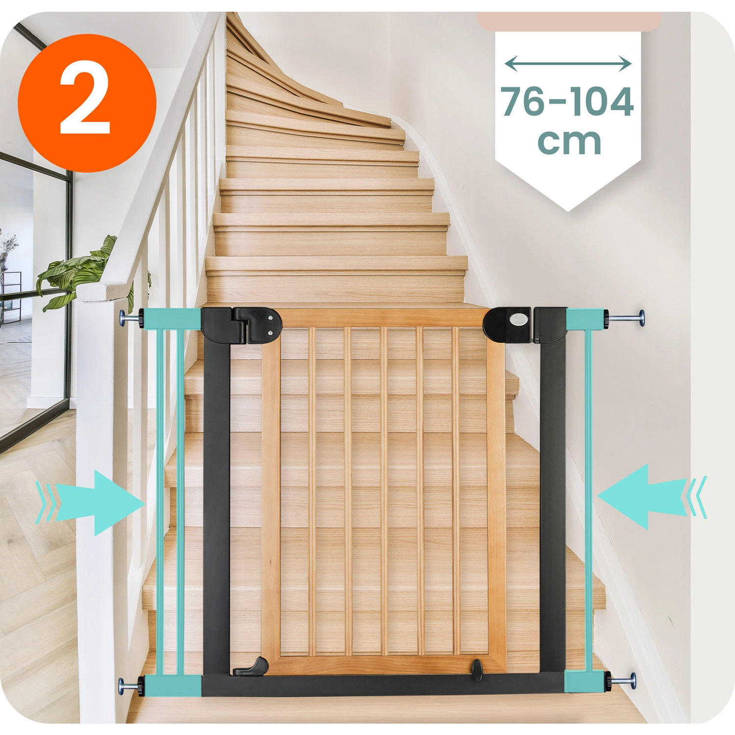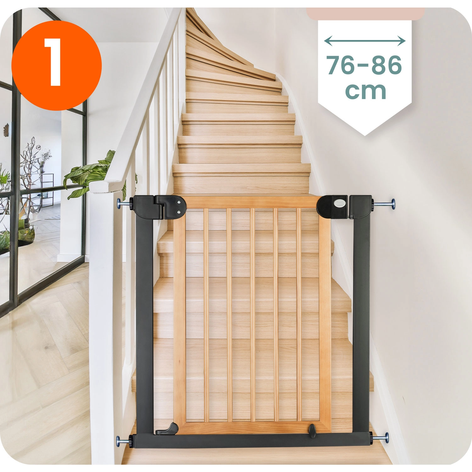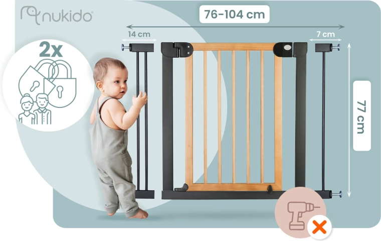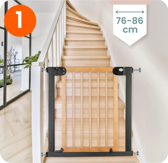 Secure stairs, doors, and passageways in moments—no drilling and no wall damage. The NUKIDO gate is pressure-mounted with 4 fixing points, so you can easily install and remove it. Thanks to its elegant black-wood design, it suits Scandinavian, modern, and loft interiors.