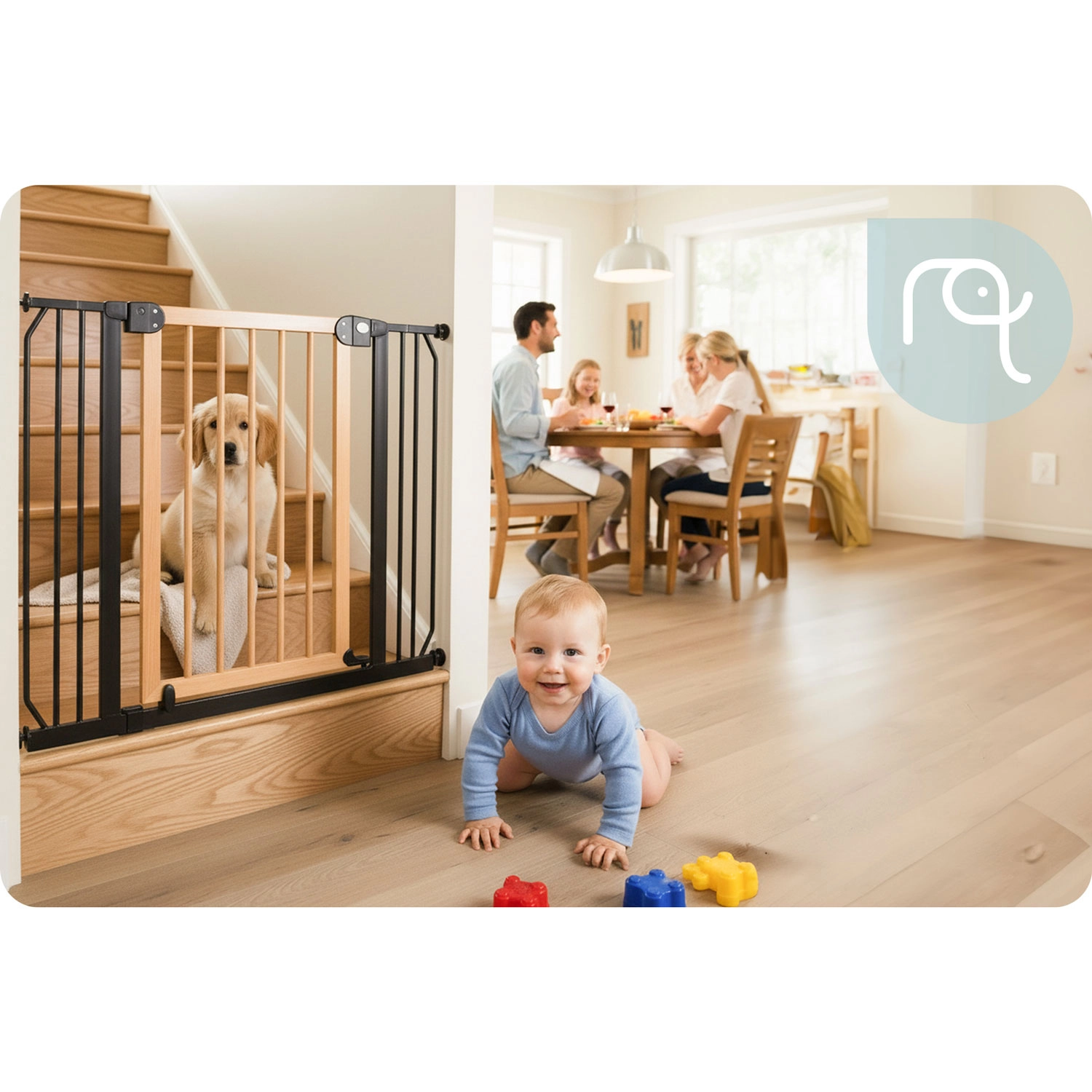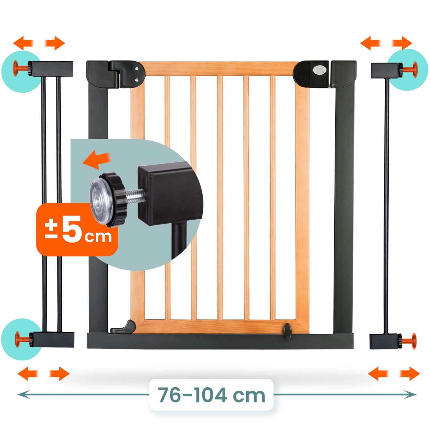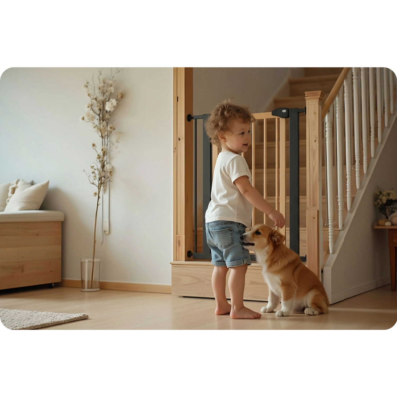 Secure stairs, doors, and passageways in moments—no drilling and no wall damage. The NUKIDO gate is pressure-mounted with 4 fixing points, so you can easily install and remove it. Thanks to its elegant black-wood design, it suits Scandinavian, modern, and loft interiors.