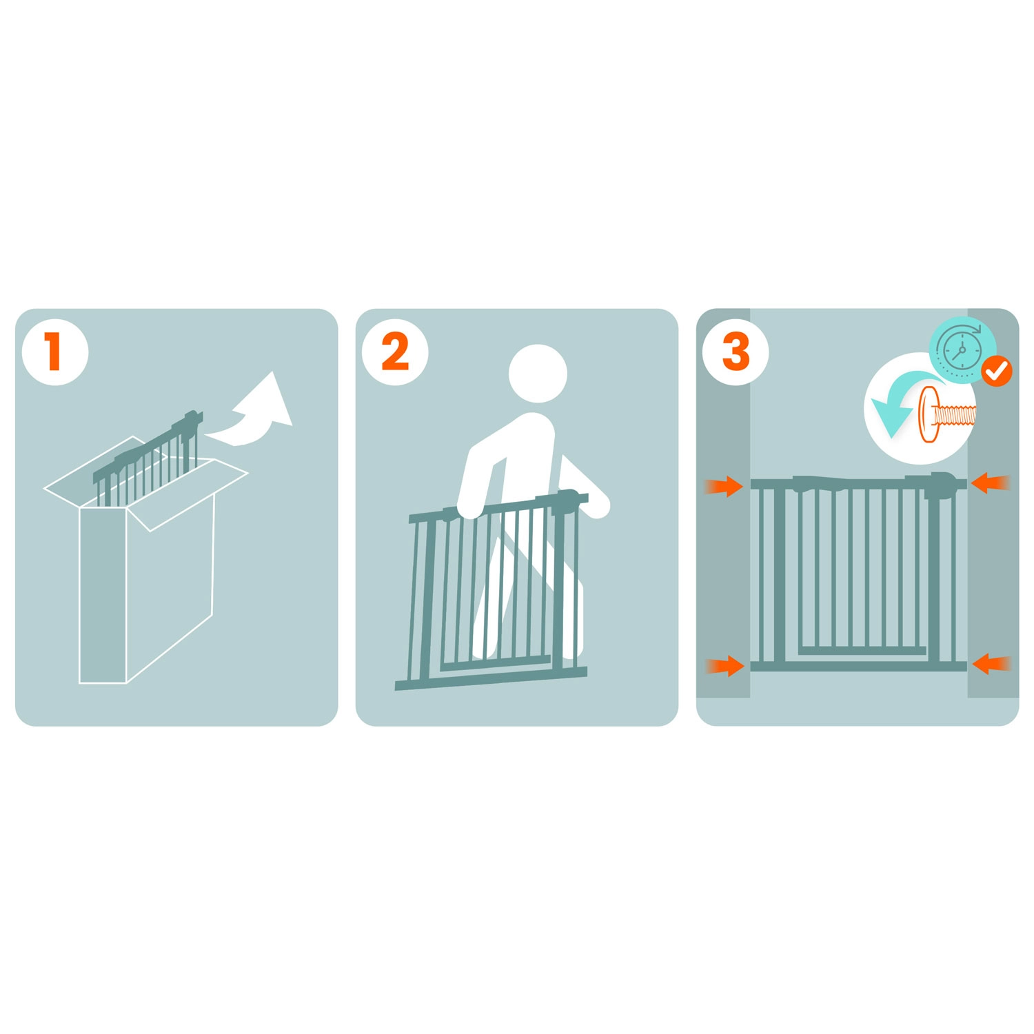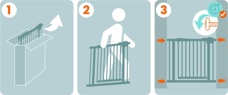Four pressure points ensure a firm setup in minutes. Easily mount and remove the gate whenever you don’t need it.