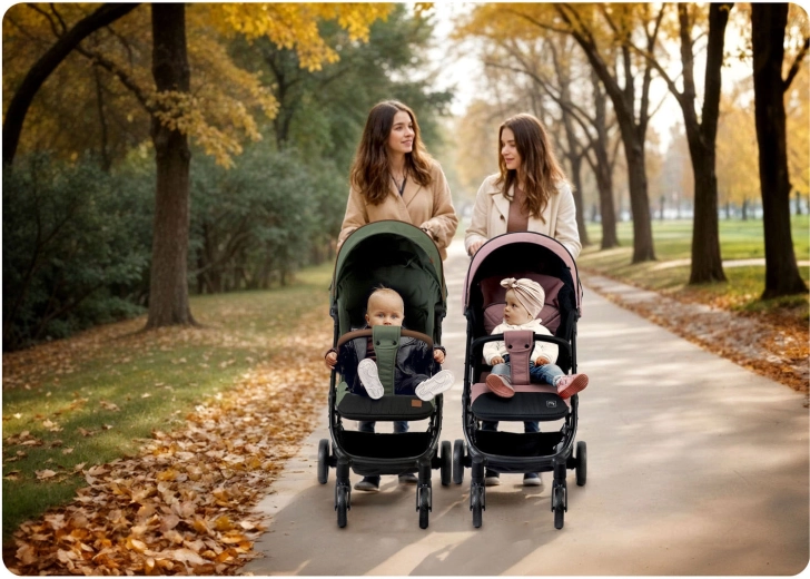 Nukido Paseo combines comfort, safety, and practicality in an elegant design. Thanks to its durable and lightweight frame, it’s easy to handle, while the amortized 360° front wheels and larger rear all-terrain wheels ensure a smooth ride in the city and the park. Your child is protected by a padded 5-point harness and an extendable canopy with protection against sun and light rain.