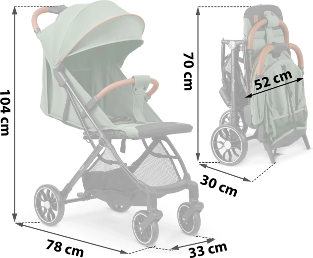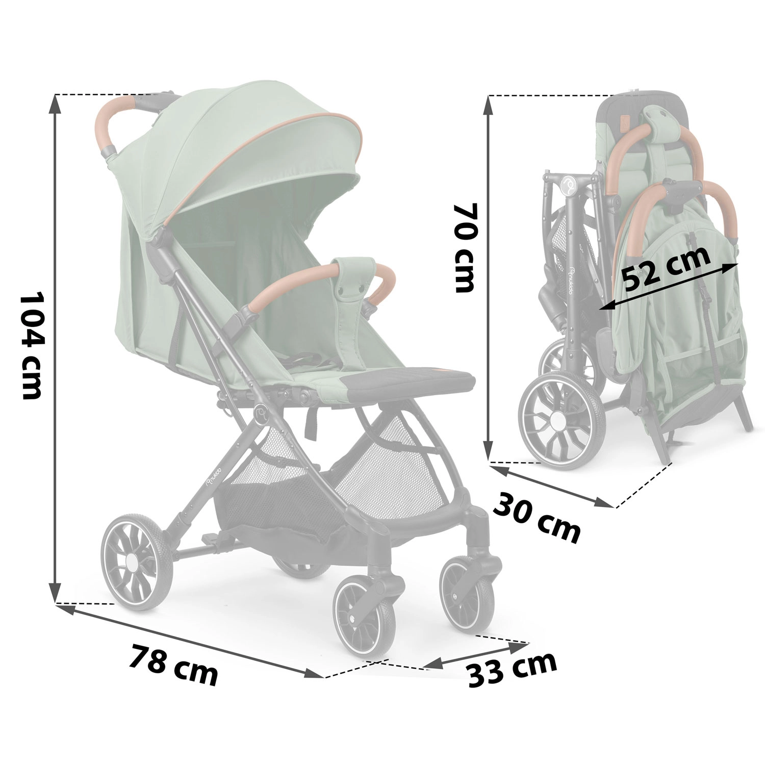 Fold the stroller with one hand in just a few seconds to carry-on luggage size. Ideal for car trips and flights – easy to carry and store.