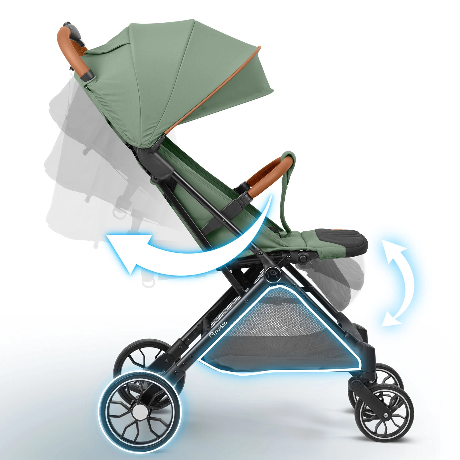 The lightweight and compact Nukido Paseo sports stroller is an ideal companion for everyday walks and travel up to 36 months. It offers one-hand compact folding in 2 seconds, 360° swivel front wheels with suspension, a 5-point safety harness, and an extendable canopy with UV protection. Thanks to the large rear wheels, reclining backrest adjustable to near flat, and a practical basket, rides are comfortable for your child and carefree for you.