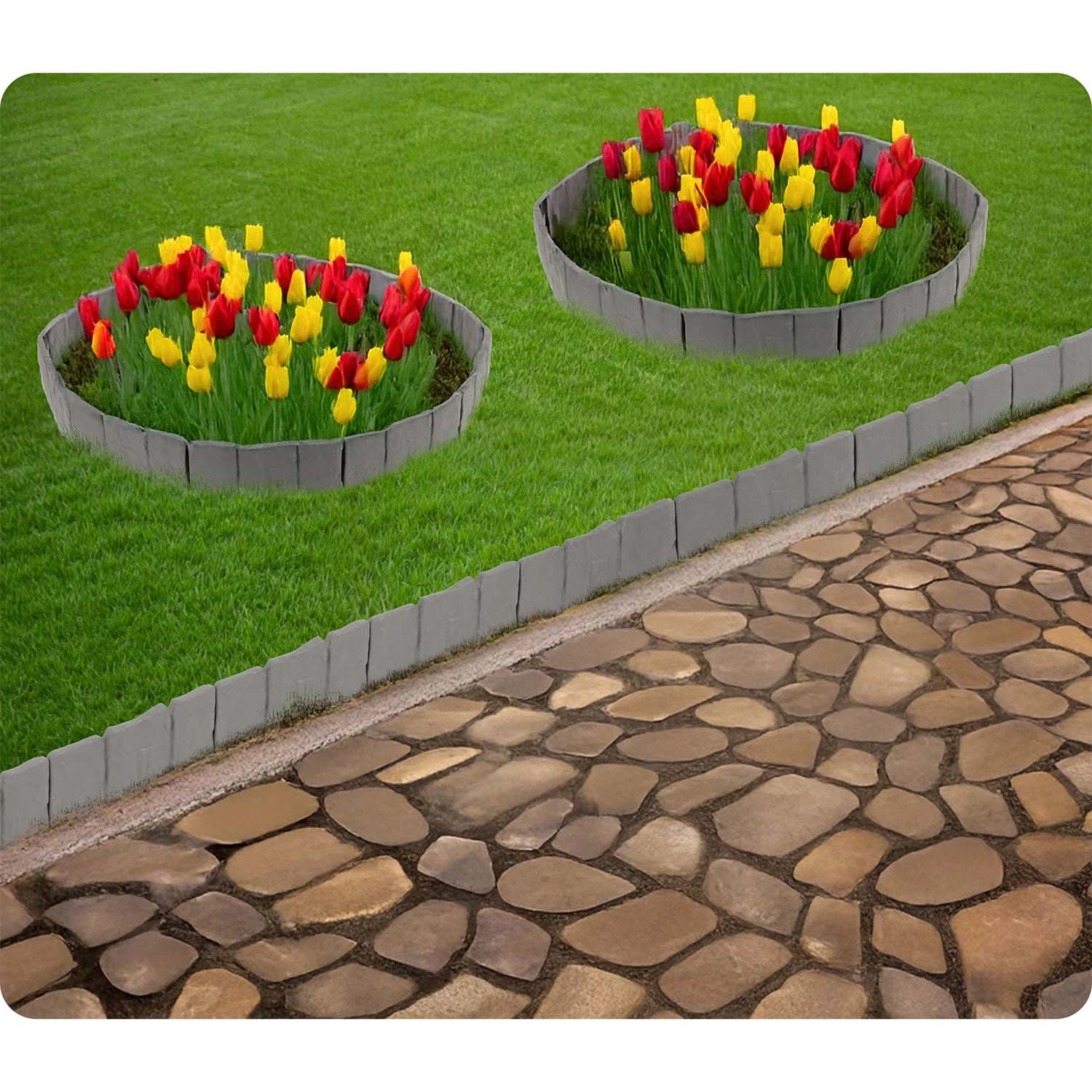 The connectable design adapts to straight lines and curves. Ideal for edging around trees, flower beds, or pathways.