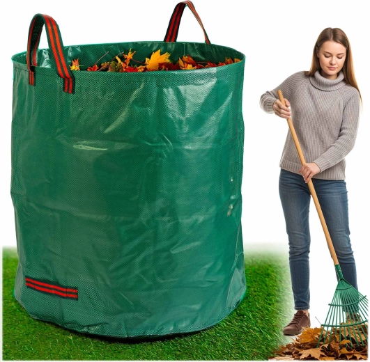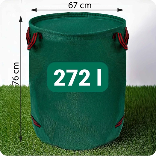Practical garden bag with a capacity of 272 l for easy collection of leaves and green waste. Made from durable 150 g/m² PP material that is UV-stable and withstands frost and rain. Thanks to two pairs of reinforced handles, the bag is easy to carry and effortless to empty. The lightweight construction holds its shape and can be folded flat for space-saving storage.