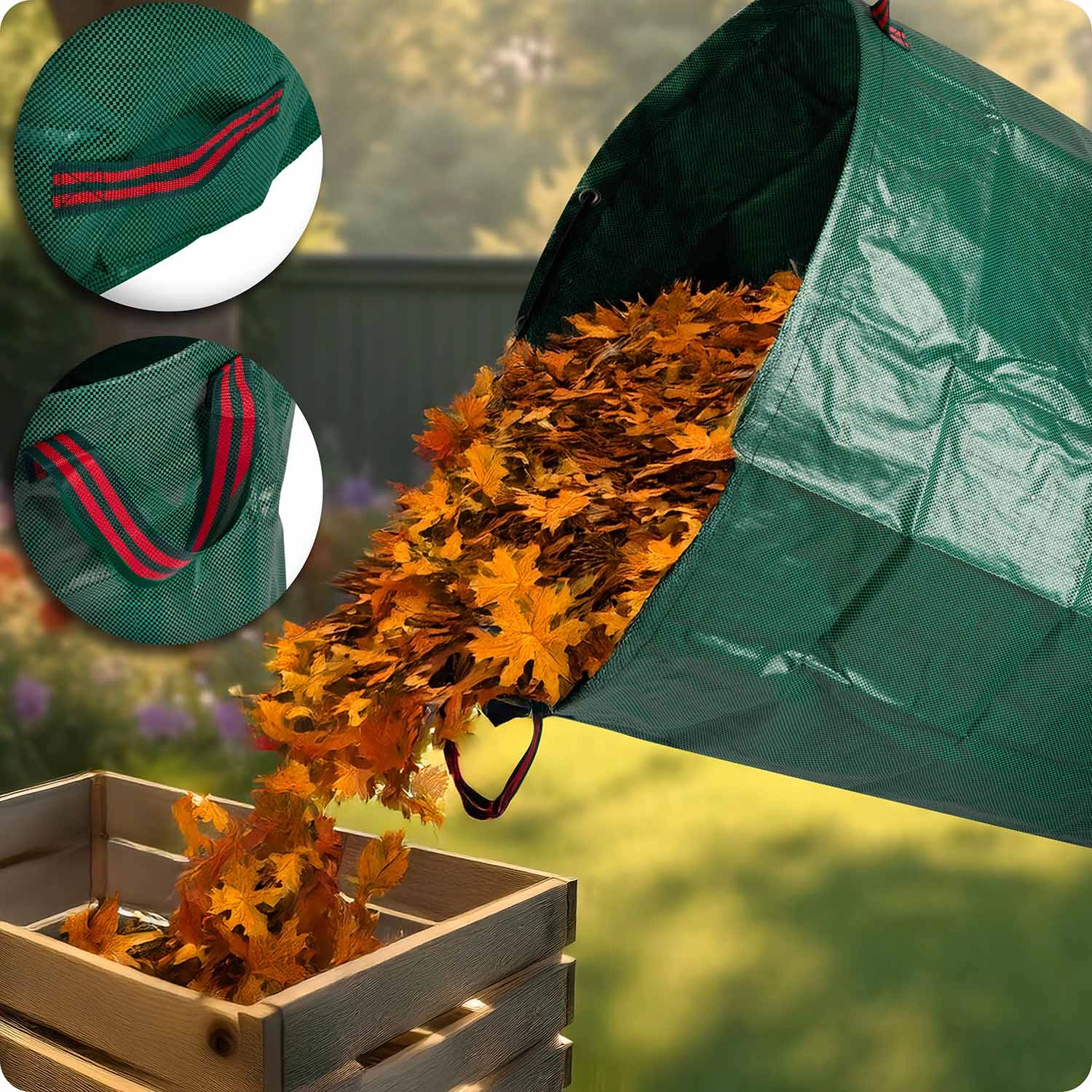 The 150 g/m² PP material is strong and tear-resistant and withstands outdoor conditions long-term — it won’t fade in the sun and stays flexible in the cold. The practical 4 handles (2 top for carrying and 2 bottom for tipping) make lifting and emptying easier.