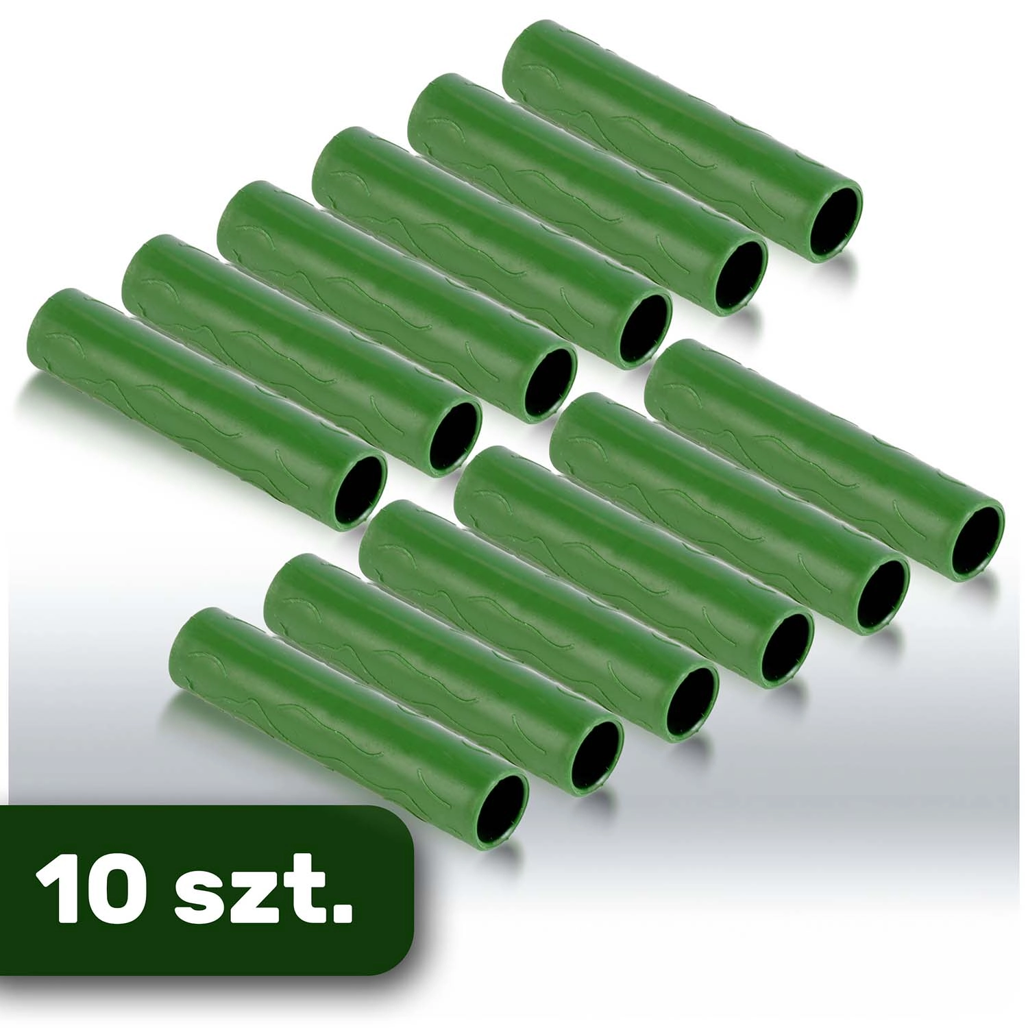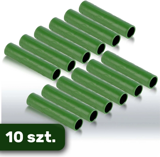 Practical connectors for 11 mm diameter poles in a pack of 10. They allow quick extension of supports, creation of spatial structures, and easy storage. Universal use for bamboo, steel, and plastic poles. Durable PE material and a convenient green finish for discreet integration into the garden.