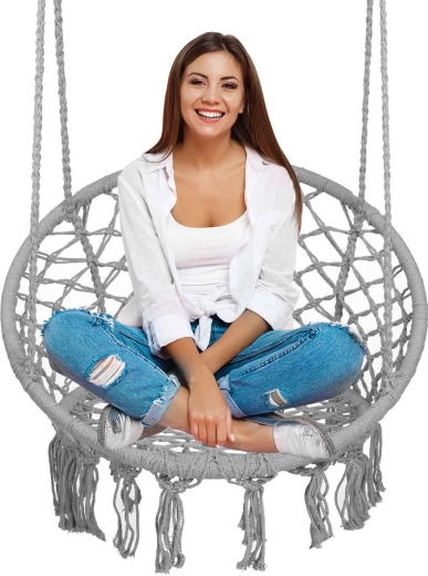 Hanging Boho Armchair, Grey
