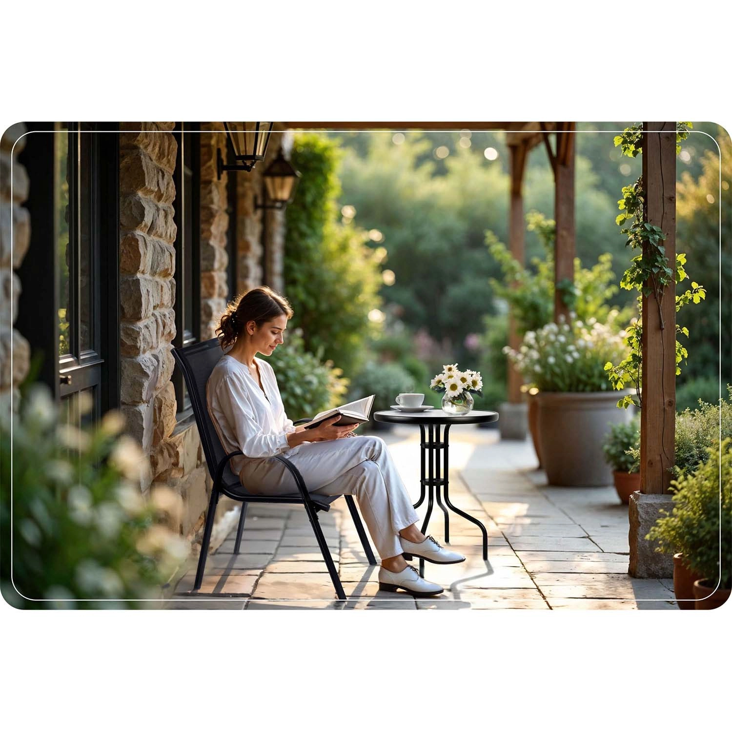 Resistant to rain, sun, and frost, making it suitable for year-round use in the garden, on the terrace, or on the balcony.
