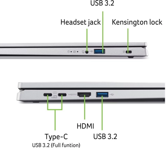 For seamless connectivity, you get two full-featured USB‑C ports, HDMI 2.1 for external monitors, and fast Wi‑Fi 6 wireless networking. The AcerSense tool lets you easily manage performance, storage, and device health with a single click, while Acer PurifiedVoice and TNR improve the quality of online calls and video. The laptop is supplied without an OS, so you can install your preferred operating system.