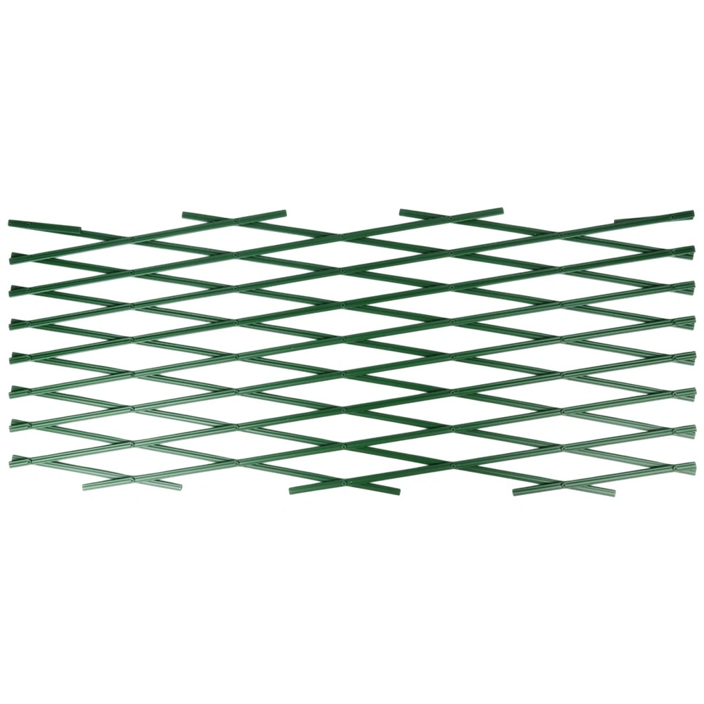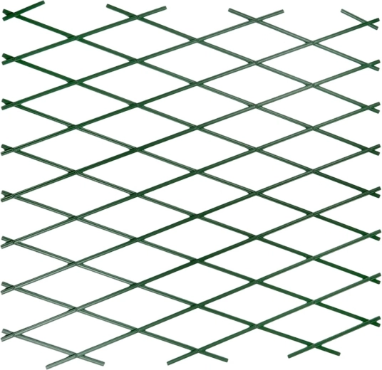Lightweight yet sturdy green plastic trellis withstands rain and sun and maintains a long service life.