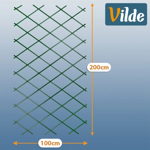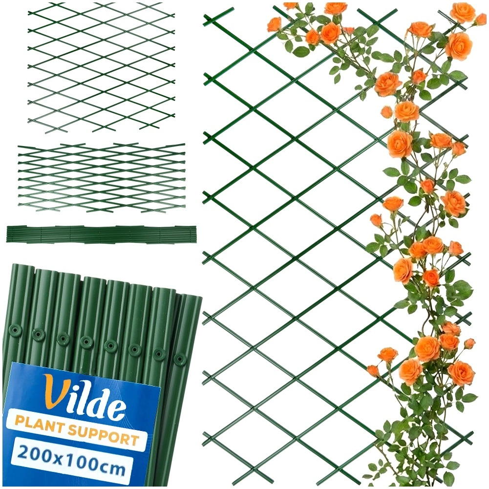 A practical garden trellis for climbing plants measuring 200 × 100 cm featuring a folding/expandable design, durable plastic construction, and easy installation. Ideal for roses, ivy, grapevines, and other climbers in the garden, on balconies, or terraces. In green, it blends naturally with the surroundings and helps guide plants upward for healthy growth and decorative appeal.