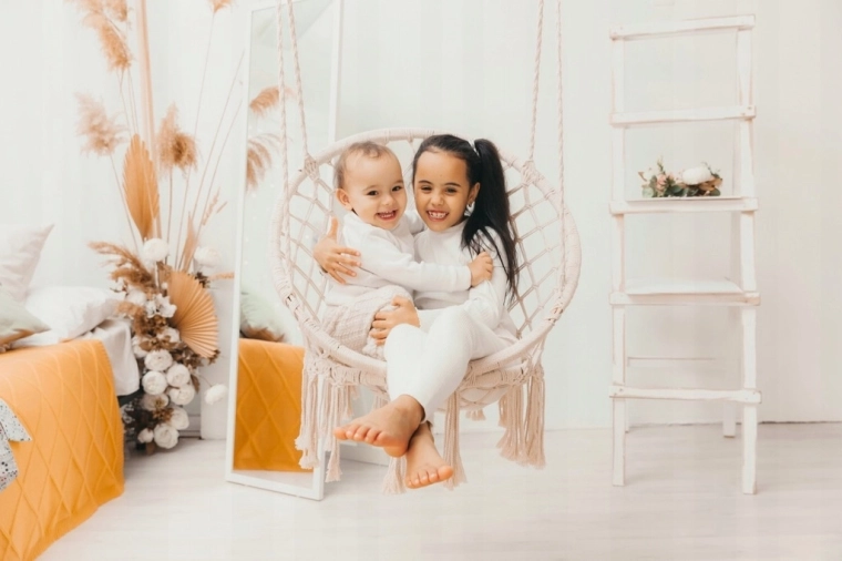 The polyester-cotton fabric is soft to the touch, well-ventilated, and pleasantly adapts to the body while sitting or gently swinging.