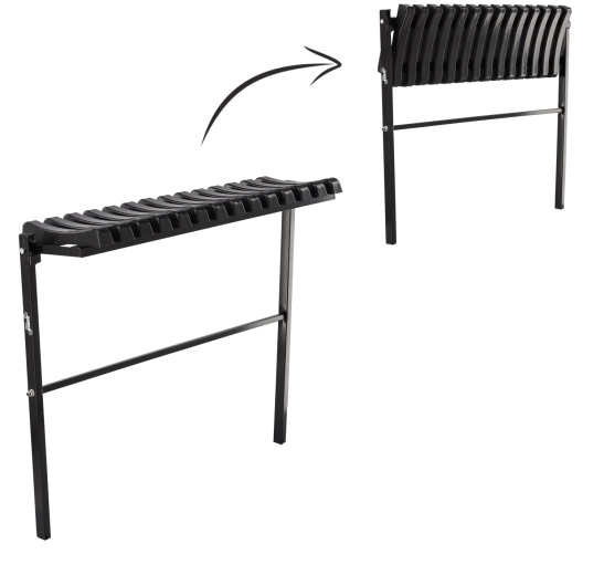 When folded, the bench is space-efficient, keeping the surroundings clean and tidy. Concrete-set installation provides high stability and safe use. The slatted seat design remains comfortable even during longer sitting.