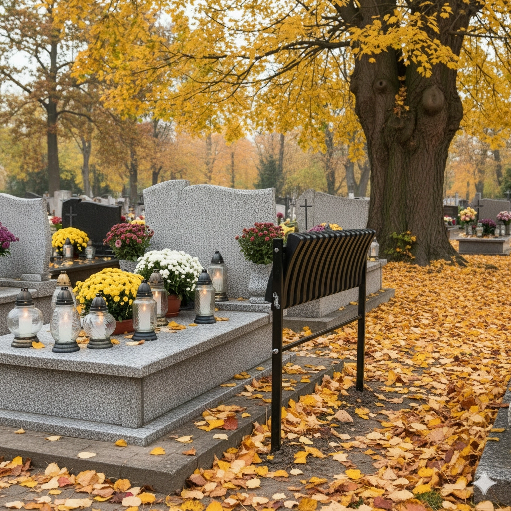 The 86 cm folding cemetery bench is a thoughtful solution for dignified and comfortable seating at a final resting place. Its minimalist look and universal black color suit any headstone, while the steel structure ensures durability and reliability outdoors.