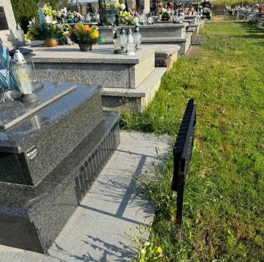 The practical fold-down seat protects the surface from dirt and simplifies maintenance around the grave. It meets the need for discreet, comfortable, and safe seating during cemetery visits, contemplation, and prayer.