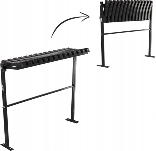 This black folding cemetery bench is designed to be firmly anchored into the ground or screwed onto a solid surface. Robust steel with a precisely crafted seat provides long service life and resistance to the elements. Integrated holes in the feet allow protection against tipping and theft.