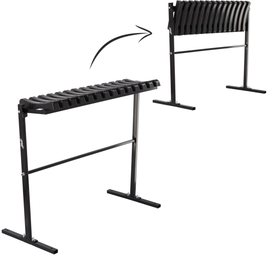 The seat folds down in seconds – dirt does not accumulate on it, keeping the bench clean and ready to use all year round.