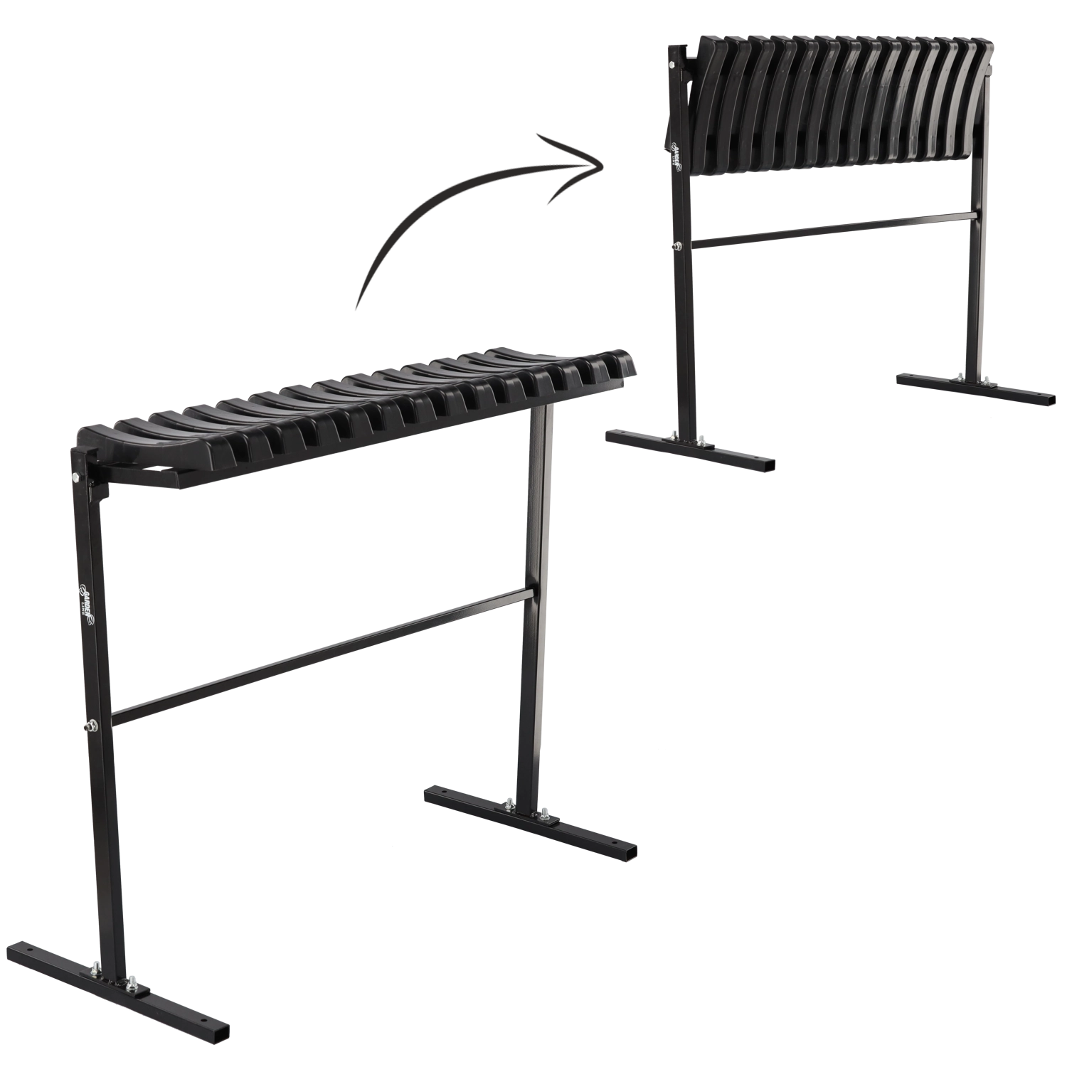 - Durable steel construction: seat made of steel slats, sturdy legs, and reinforcements.