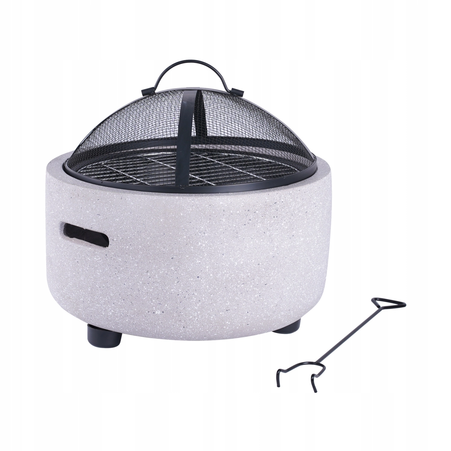 The spark dome and poker minimize the risk of flying embers and enhance comfort. Sturdy legs and side handles make carrying easier.