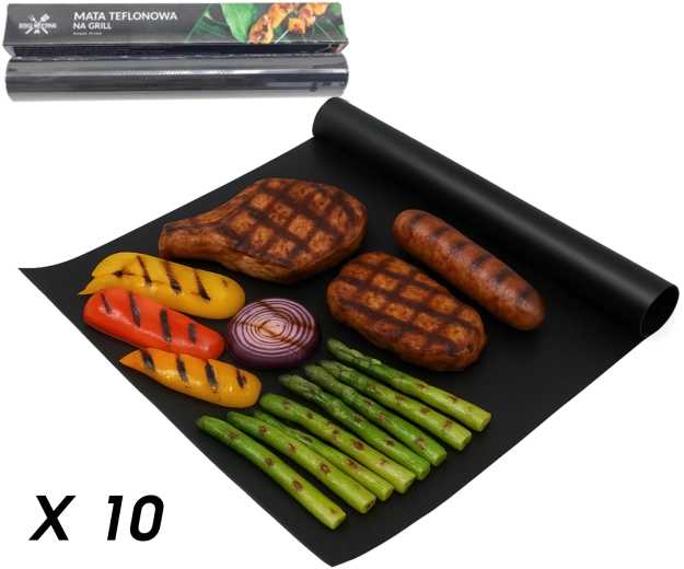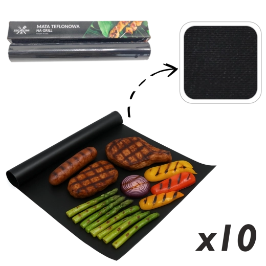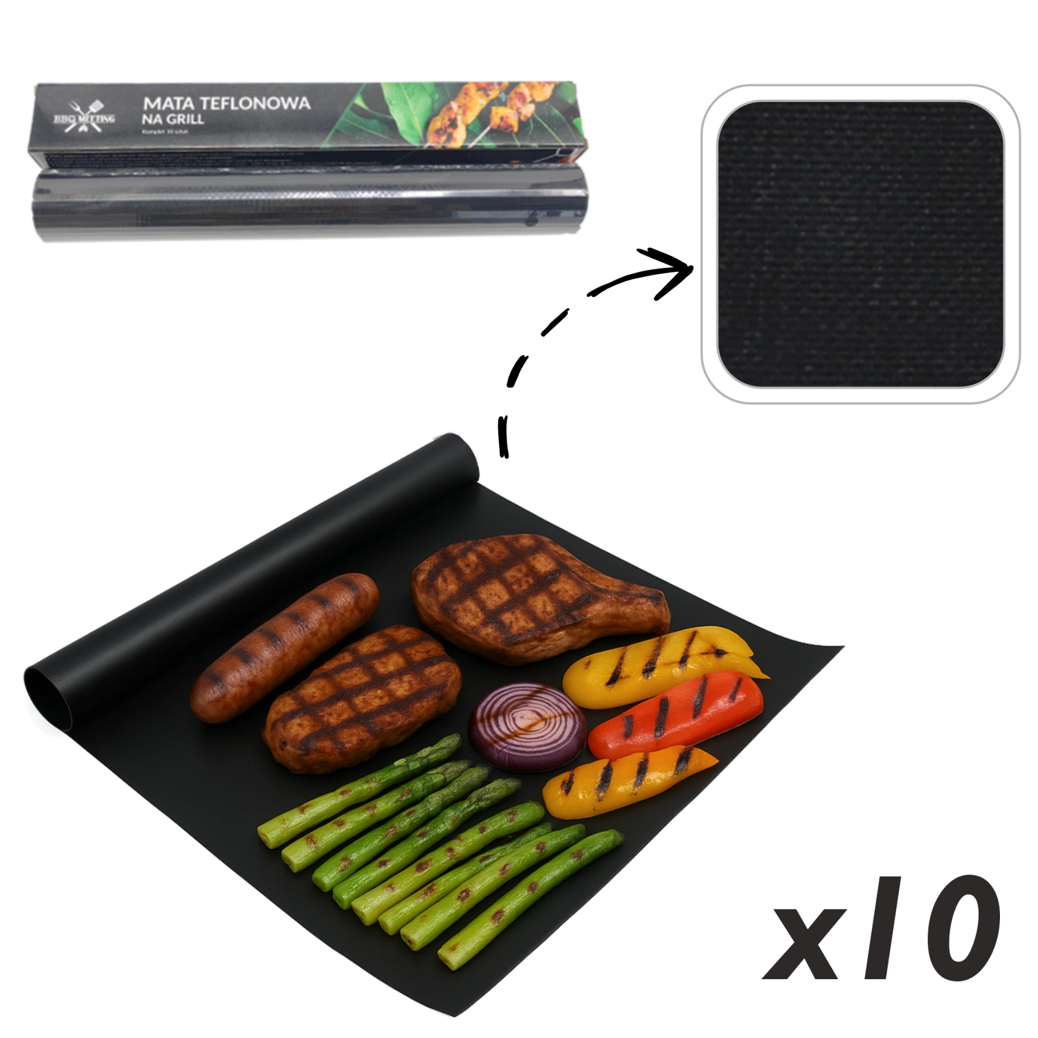 No more burnt grates or small pieces of food falling into the fire. The Teflon grill mats create a smooth non-stick surface suitable for meat, vegetables, fish, and delicate ingredients. They keep juices with the food, improve even cooking, and cut cleanup to a minimum.