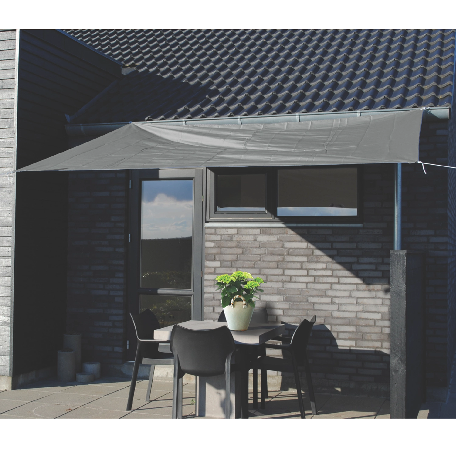 The rectangular shade sail 3 × 2.5 m is a smart solution for creating shade and privacy on your terrace, in the garden, or on the balcony. The high-quality polyester withstands sun and light rain, and its modern gray shade suits most exterior styles.
