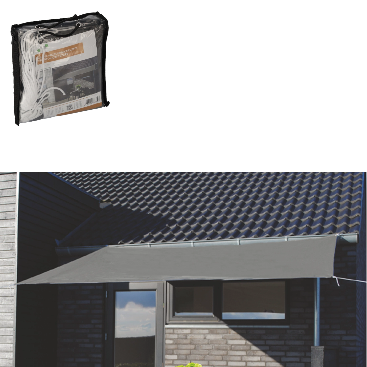 A practical and stylish shade sail for terrace, balcony, and garden measuring 3 × 2.5 m, providing pleasant shade and protection from UV radiation. Thanks to the water-repellent polyester with a weight of 160 g/m², it offers comfort even in light rain. In a universal gray color, it fits easily into any outdoor space and is easy to install using the included ropes.