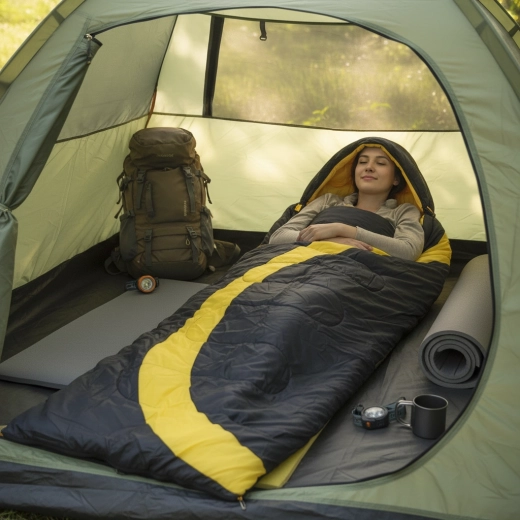 Thanks to its weight of just 0.85 kg and the included sack, the sleeping bag is easy to carry and compress into a backpack. A durable full-length zipper makes venting and entry simpler. Color variants (black–blue, black–yellow, black–lime) add a fresh look to your gear.