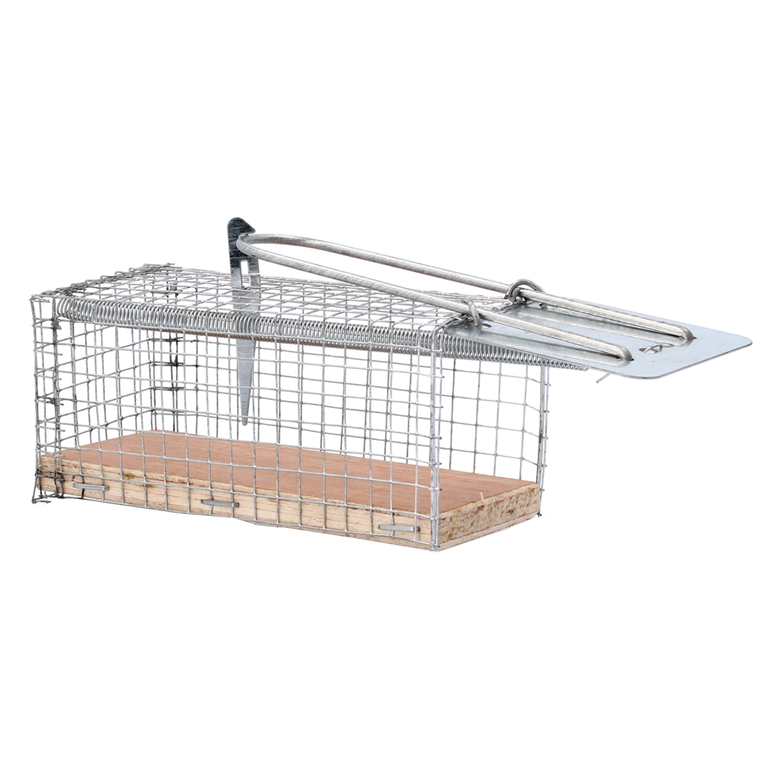 A humane and effective solution for capturing small pests without harm. This live-capture trap features a reliable drop-door closure, single entry, and easy installation. Thanks to its sturdy metal construction and wooden base, it’s ideal for homes, warehouses, and workplaces. It includes a bait hanger to increase effectiveness.