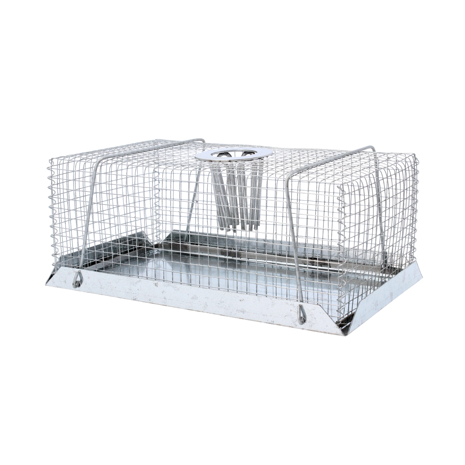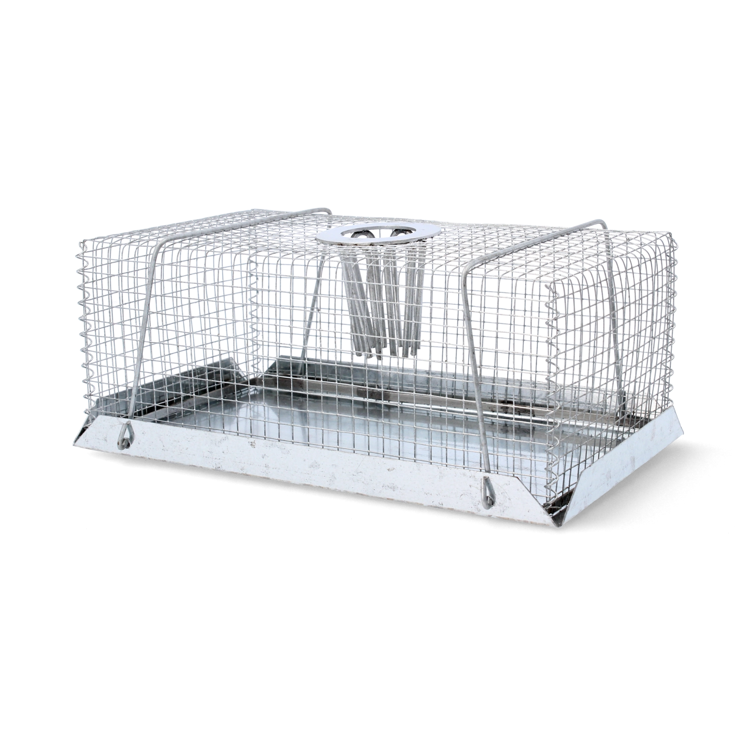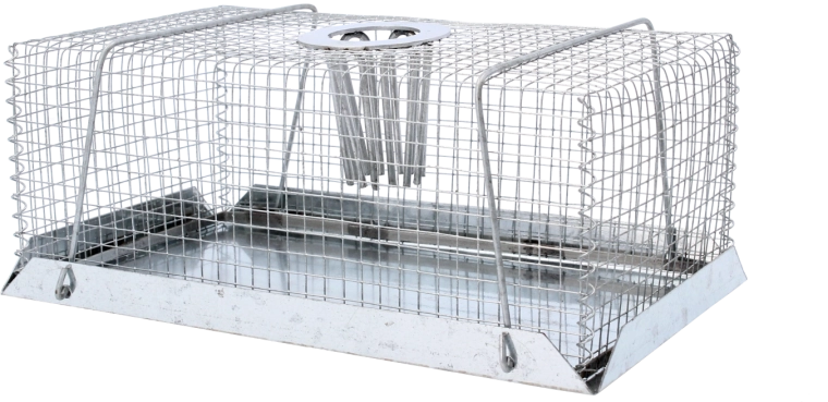 Practical live-capture trap for mice and rats for humane catching without injury. Thanks to the smart design with a top entry, the animal easily enters but cannot escape. Ideal for homes, warehouses, and facilities. Easy installation, a bait hanger, and a durable all-metal design for long service life and reliable performance.