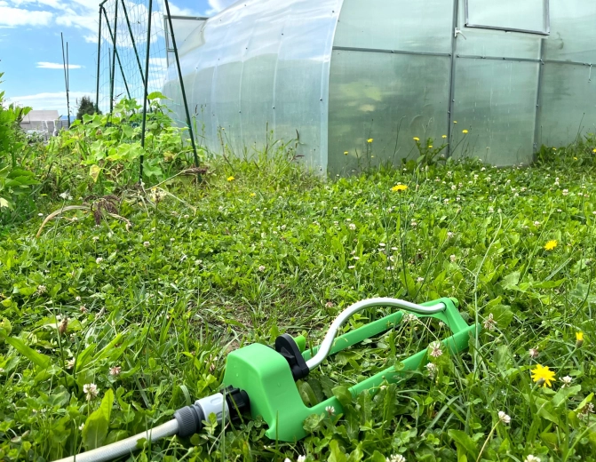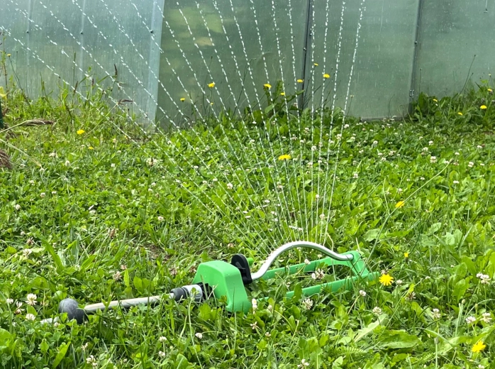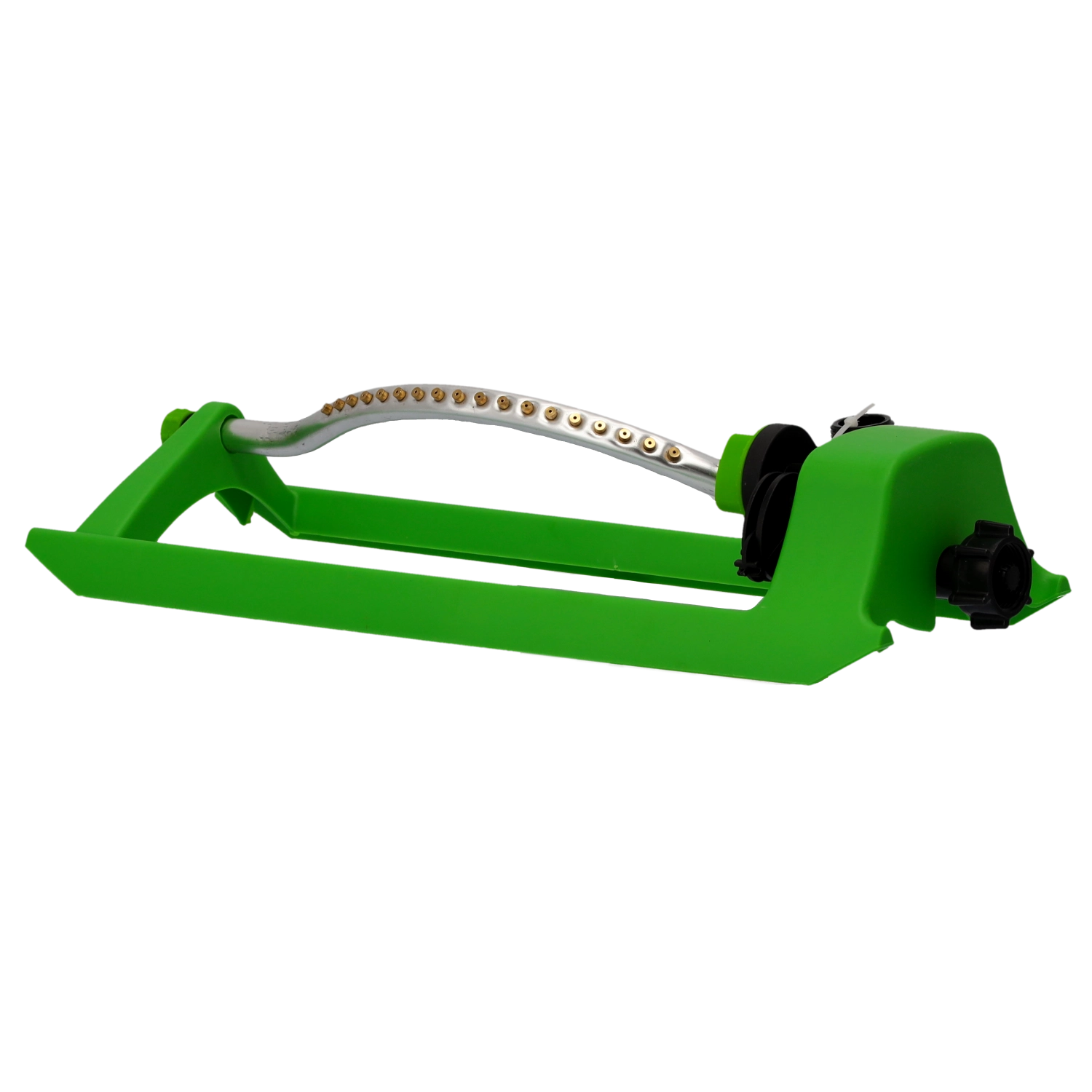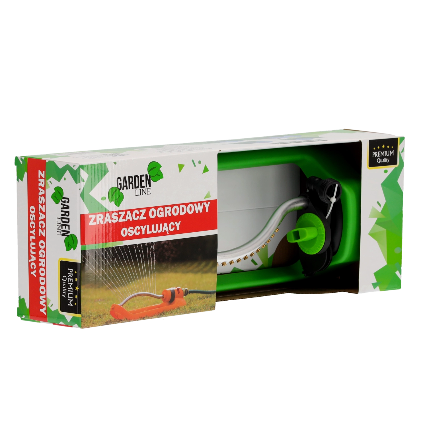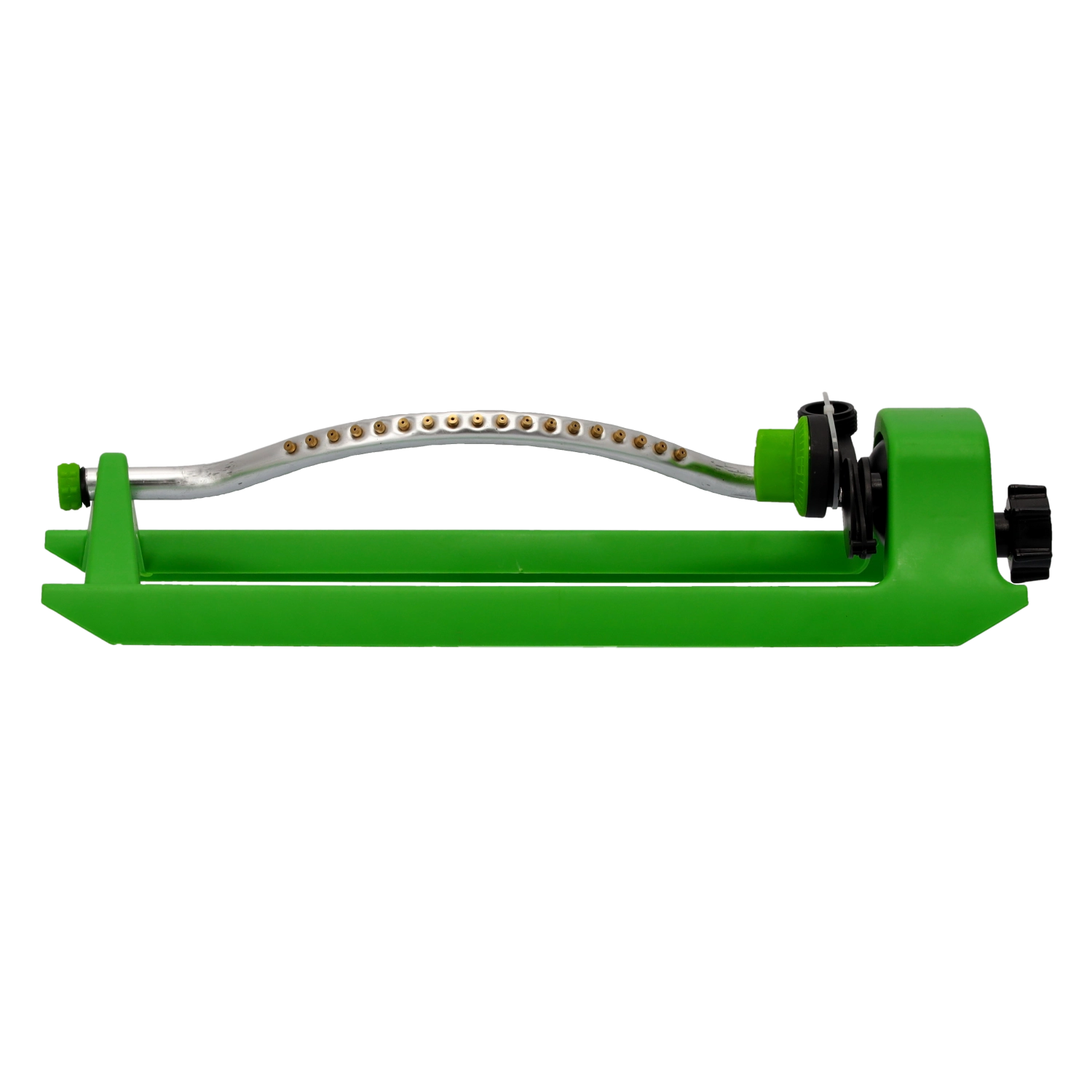 Practical garden oscillating sprinkler for even watering of lawns and flower beds. Offers 4 spray modes (right, left, full, partial), brass nozzles for long service life, and easy operation. Ideal for everyday use, weather-resistant, and quick to install.