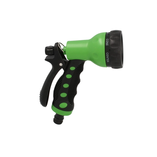 Universal garden spray gun with 7 spray modes for precise watering of lawns, beds, and flowers. Thanks to the smooth flow control, you can easily adjust the water pressure. The durable design made of high-quality ABS and TPR is long-lasting, leak-tight, and resistant to sun and frost. Cadmium- and lead-free, recyclable.