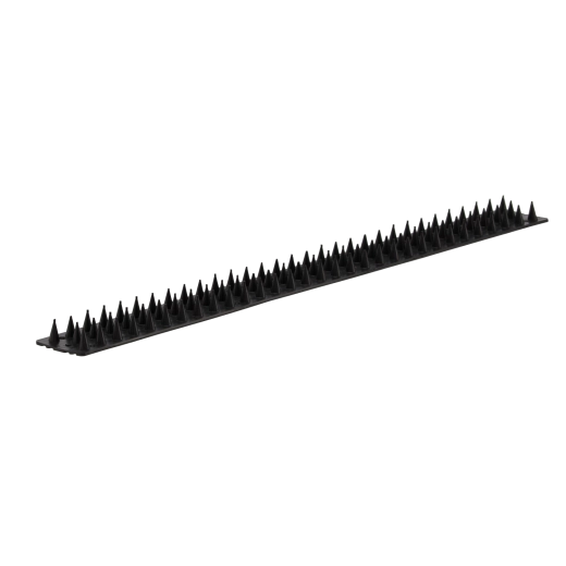 Discreet and effective plastic bird spikes protect windowsills and other surfaces from birds perching and fouling. In black, they look subtle and stylish while providing reliable protection without damaging surfaces. Single module length 50 cm, width 4.5 cm, spike length 3 cm.