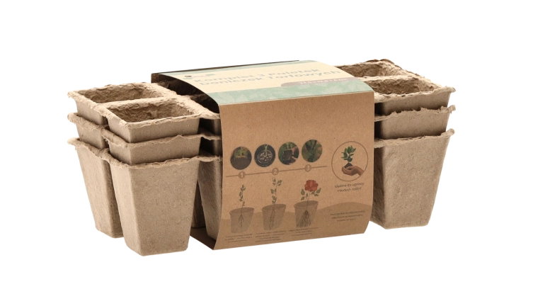 The molded paper pulp naturally decomposes in the soil after planting. No plastics, less waste, and a healthier root system.