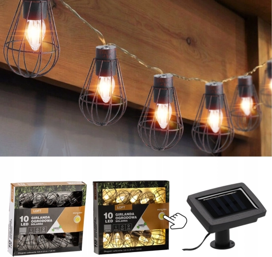 The stylish solar loft garland transforms evenings on the terrace, under a pergola, or on the balcony. Metal cage covers and warm white LEDs create pleasant ambient lighting that enhances relaxation and social gatherings. Solar power saves energy and cabling—just place the panel in the sun and the lights will turn on automatically in the evening.