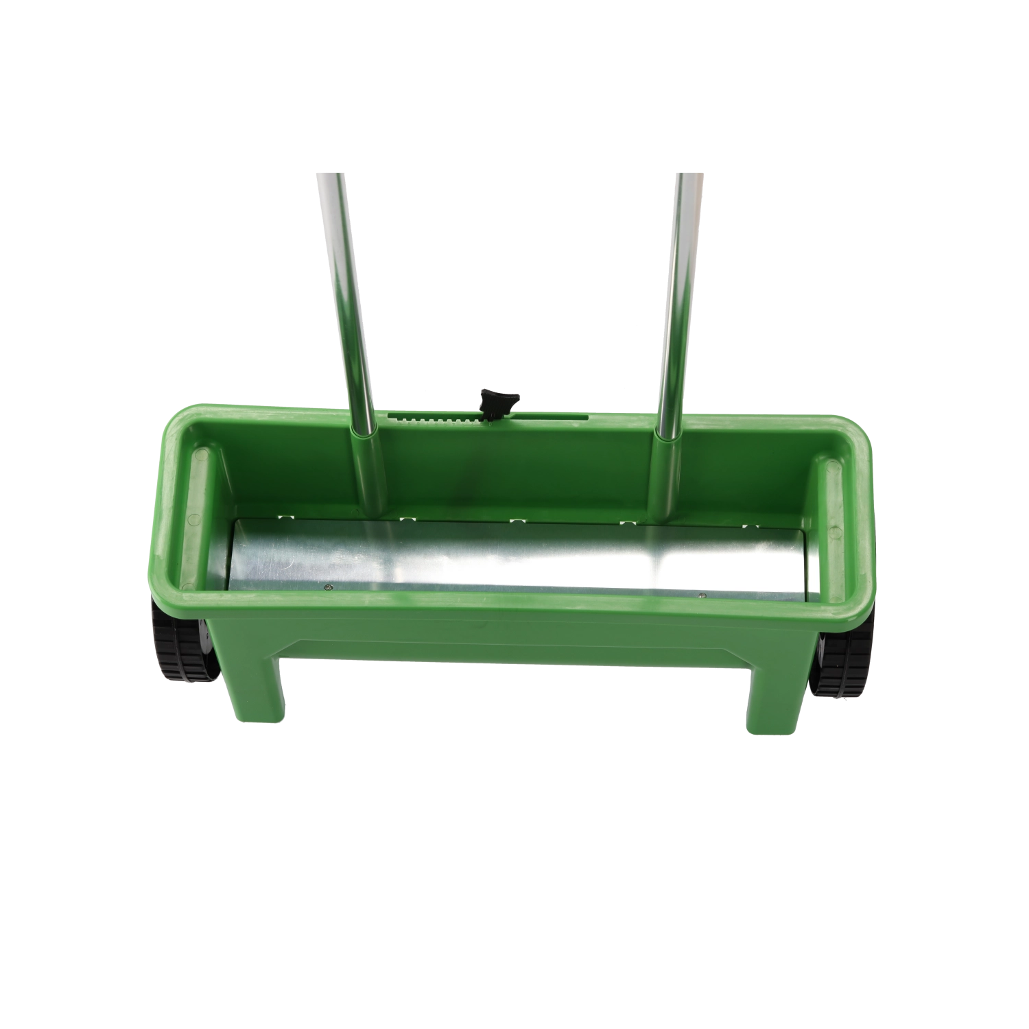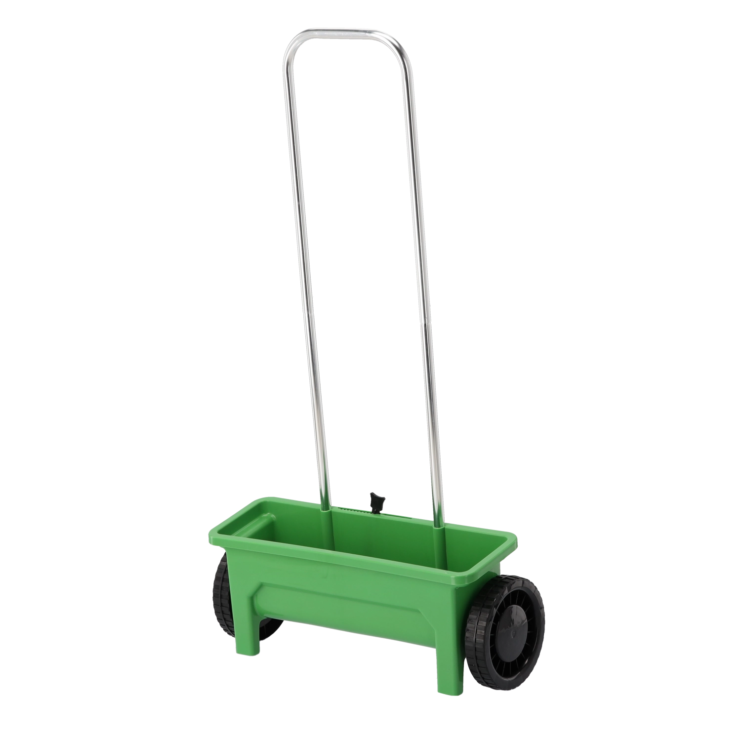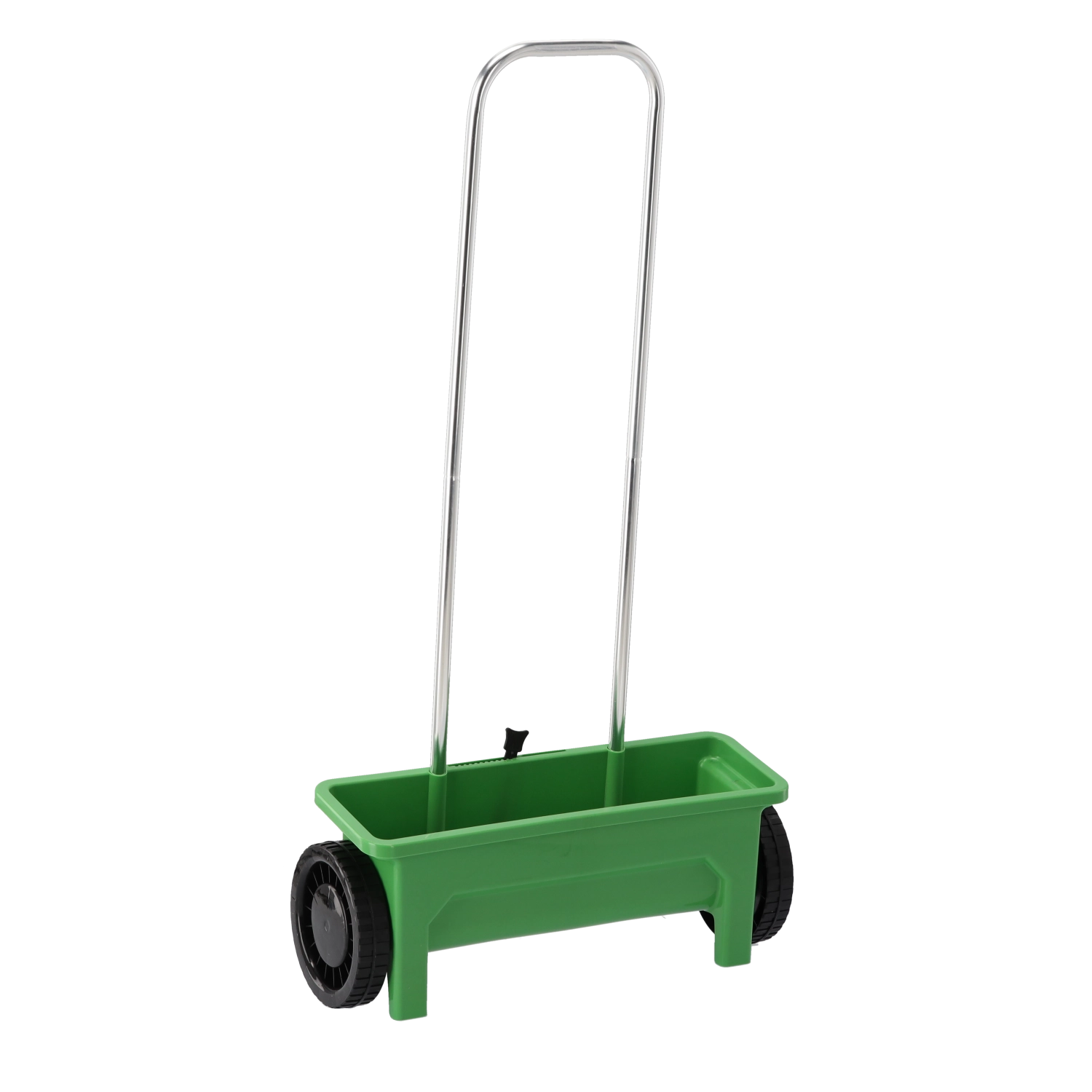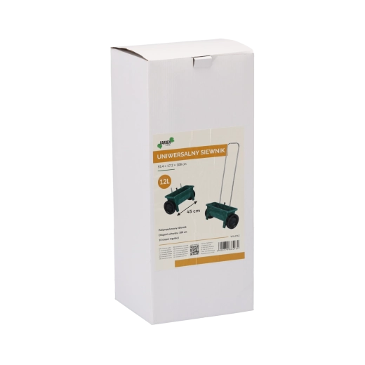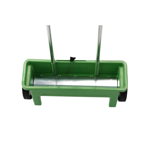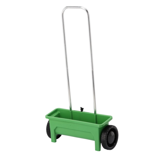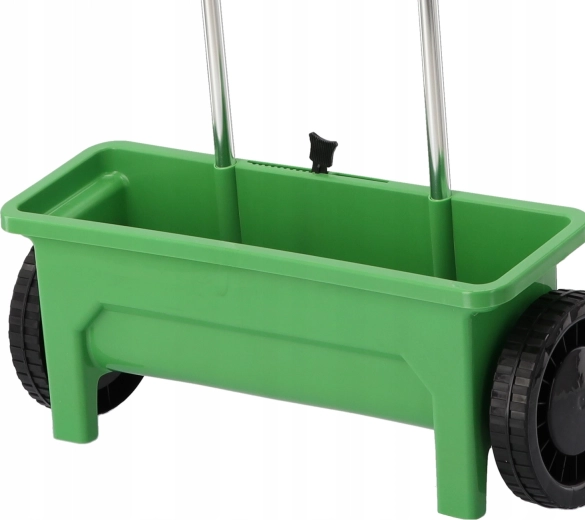 The polypropylene hopper resists weather and impacts. Large wheels ensure stable travel and smooth guidance on various surfaces.
