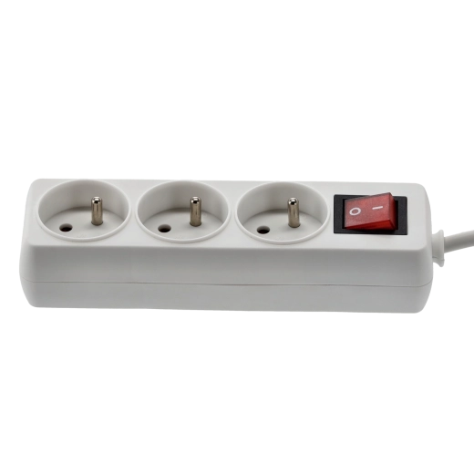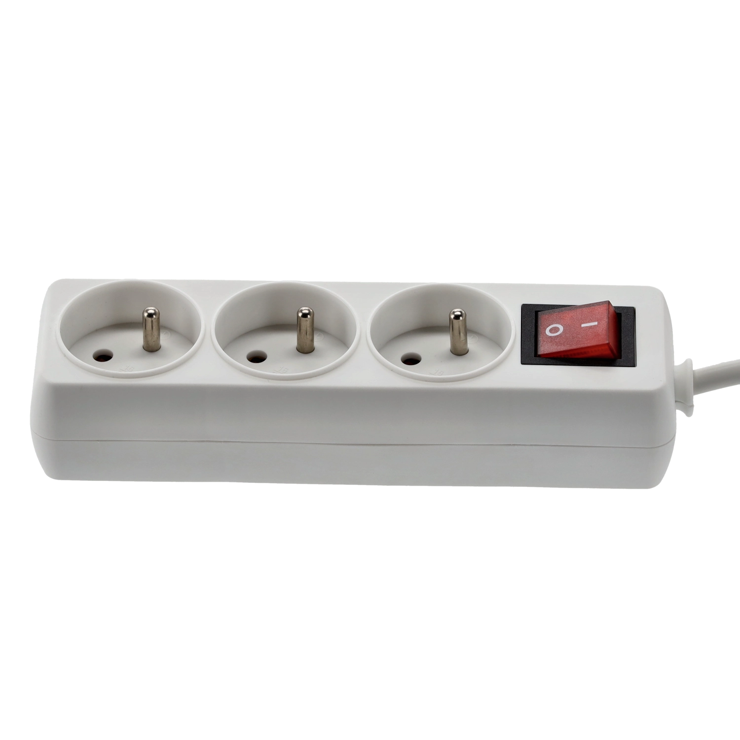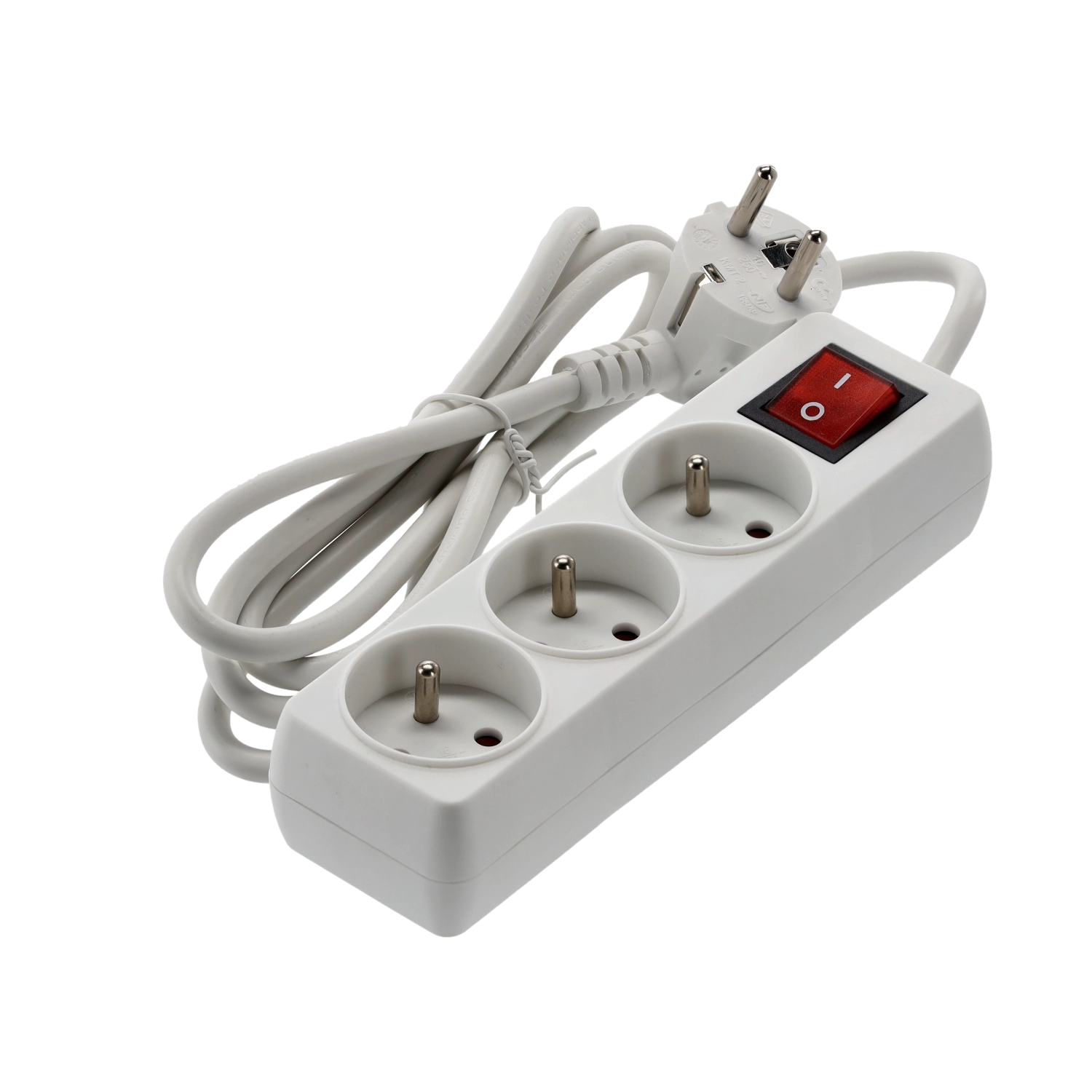 Extension power strip with switch, 3 outlets, 1.5 m, white