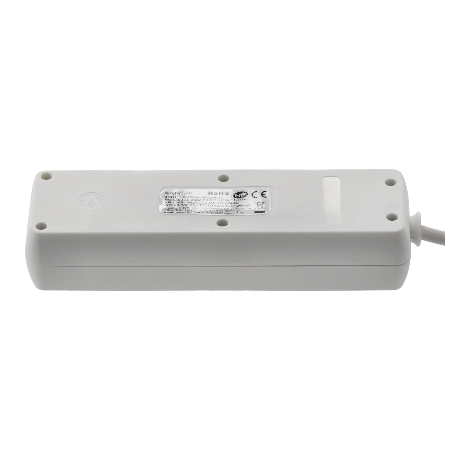 This white extension power strip with three outlets is ideal for everyday use with desktop computers, TVs, chargers, and small appliances. Thanks to the backlit main switch, you can easily disconnect all connected devices at once, saving energy and improving safety.