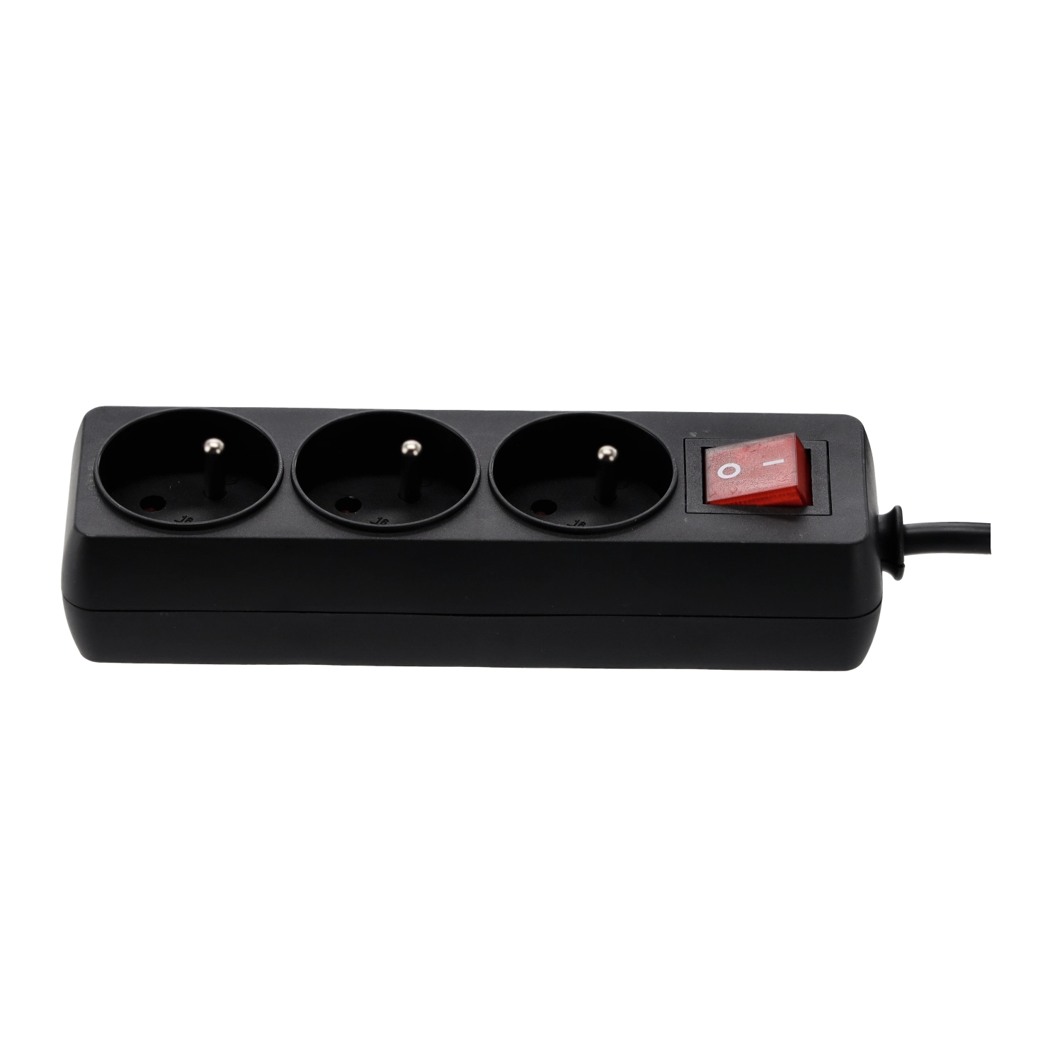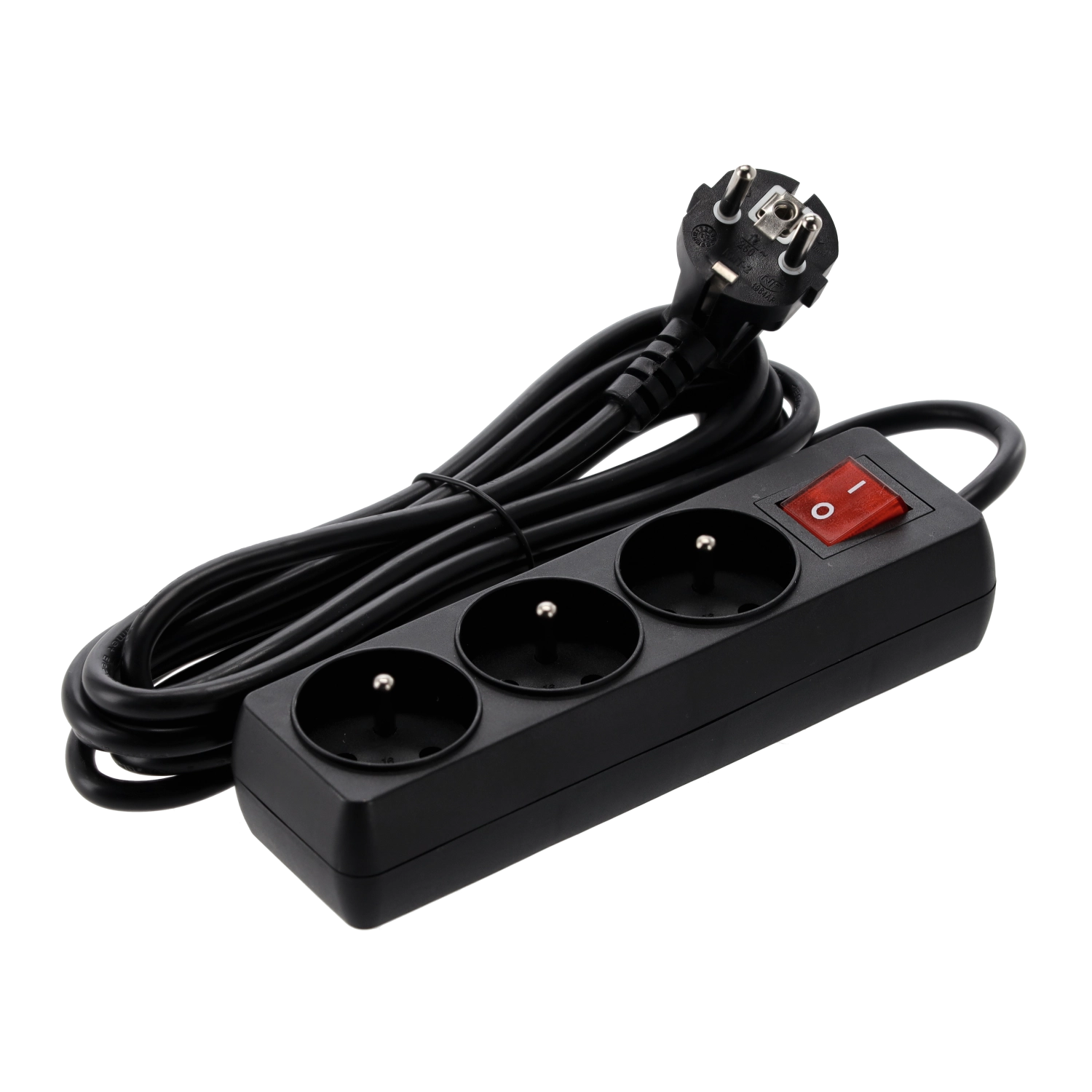 The compact strip provides 3 round sockets with protective earth pin in a sturdy plastic casing for everyday use.