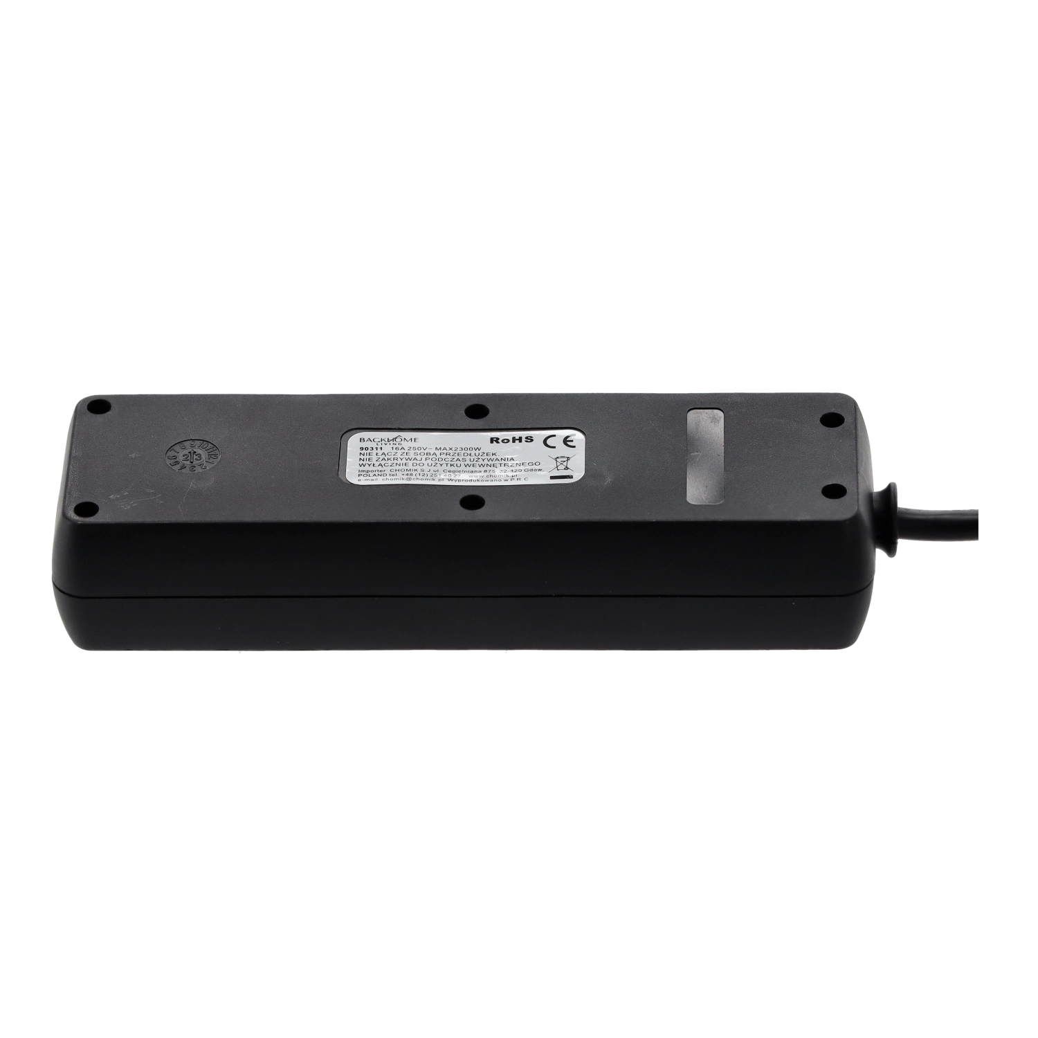 Focus on safety and reliability is ensured by the 3×1.0 mm² copper lead, rated voltage of 250 V and current of 16 A, with a maximum load of up to 2300 W. A durable plastic body and child protection contribute to safe everyday use.