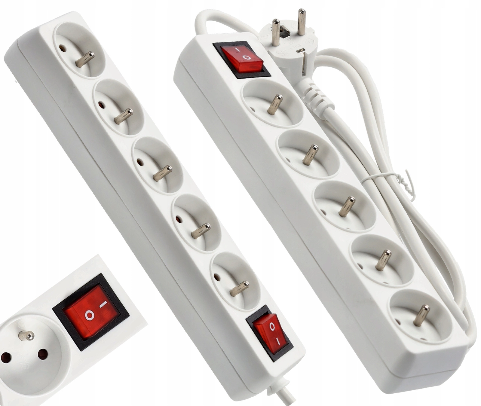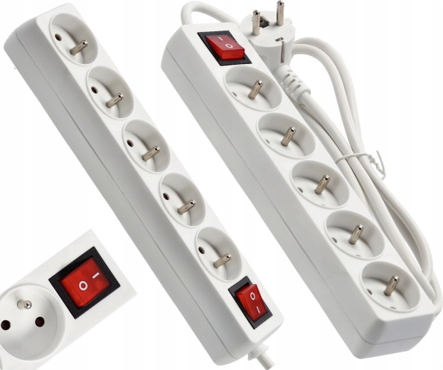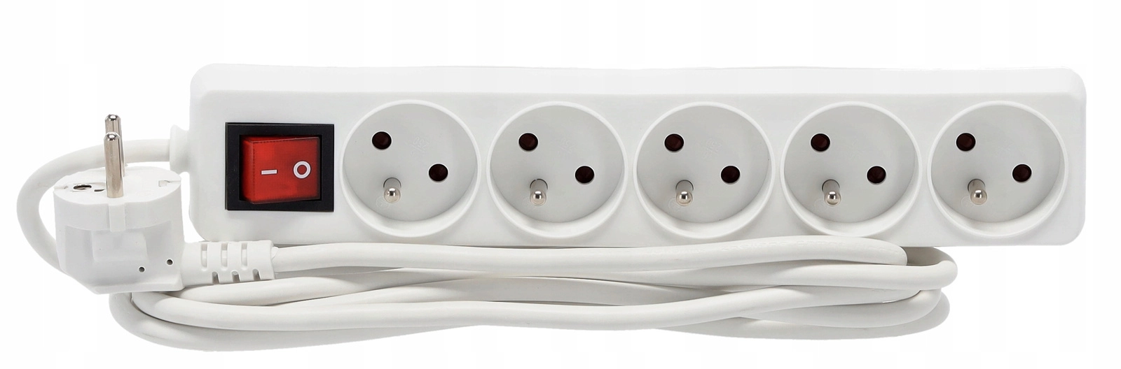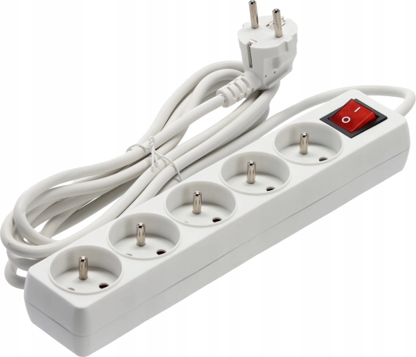 This white power strip offers an ideal solution for connecting multiple appliances from a single outlet. With 5 grounded Schuko sockets and an illuminated switch, you control consumption and safety with one press. The 3-meter copper cable provides placement flexibility and reliable current transfer.